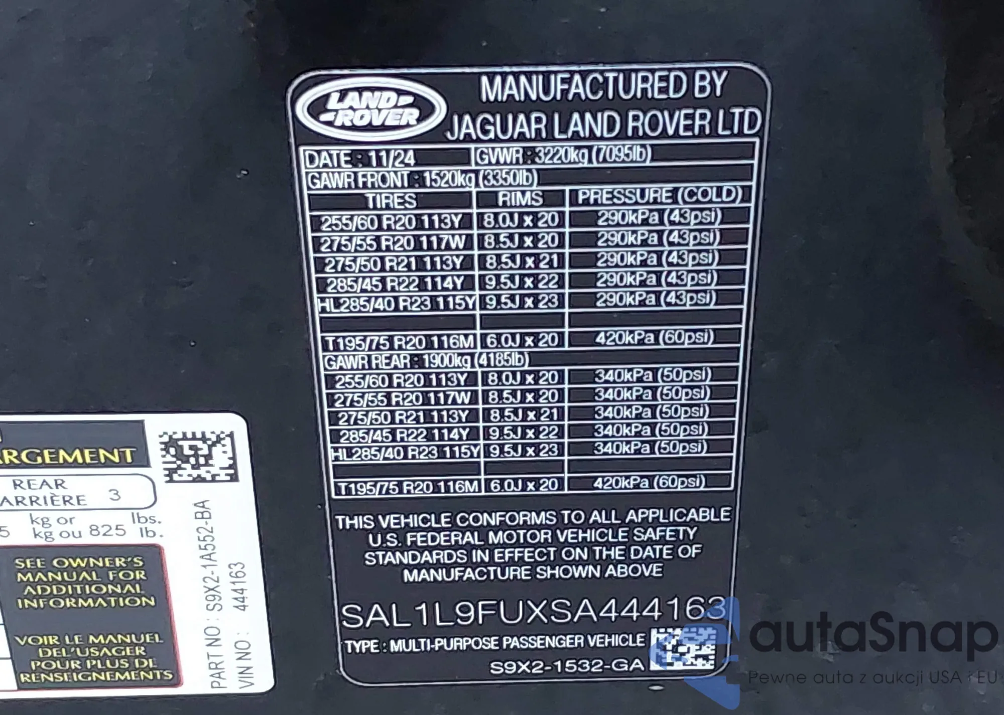 • VIN SAL1L9FUXSA444163