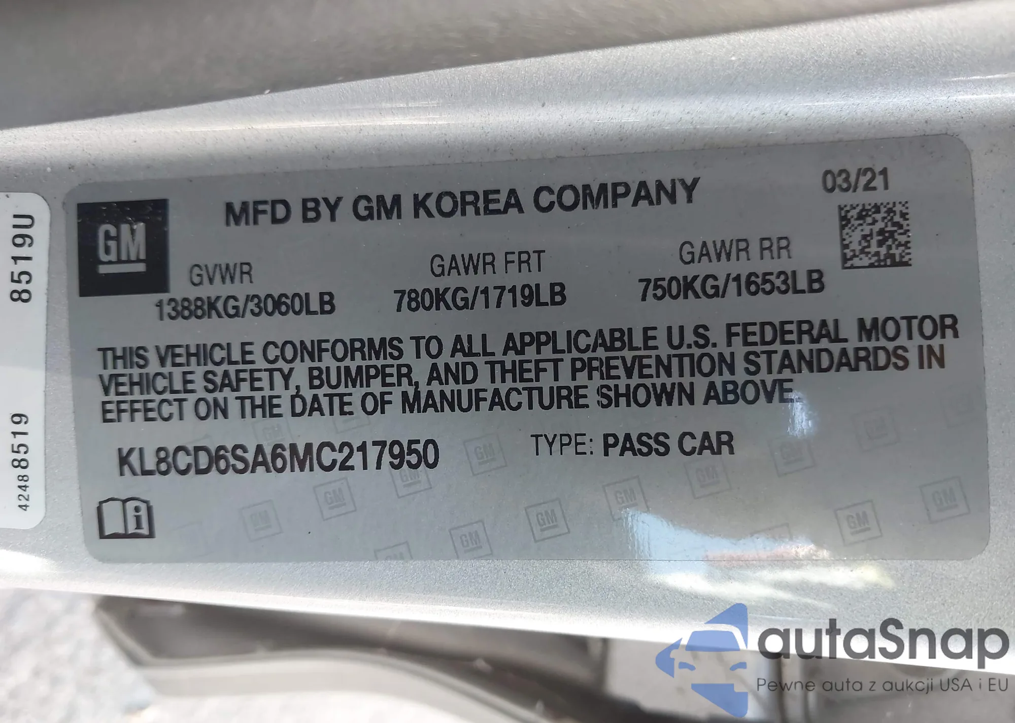 LOT: 43556782 VIN: KL8CD6SA6MC217950