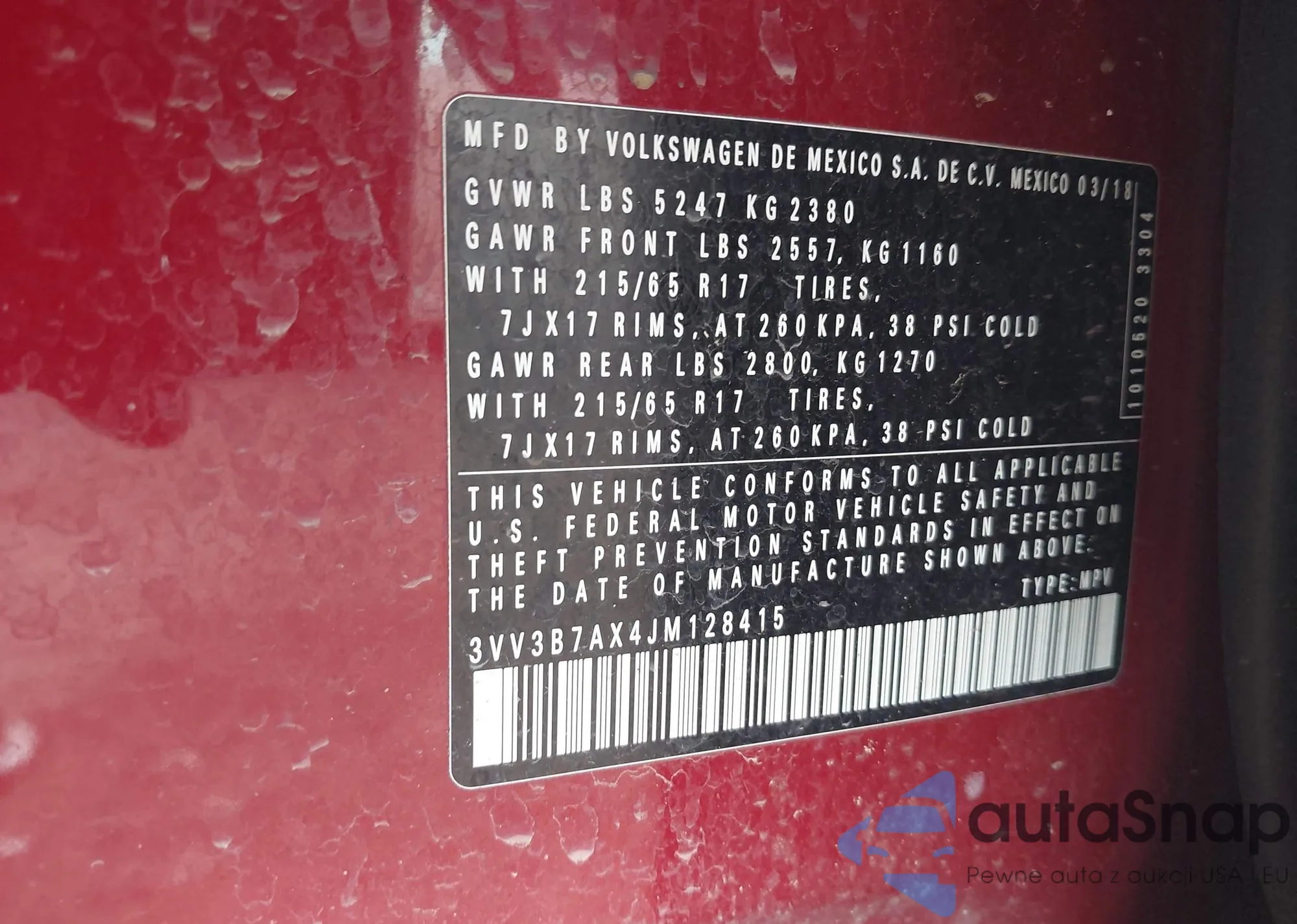 • VIN 3VV3B7AX4JM128415