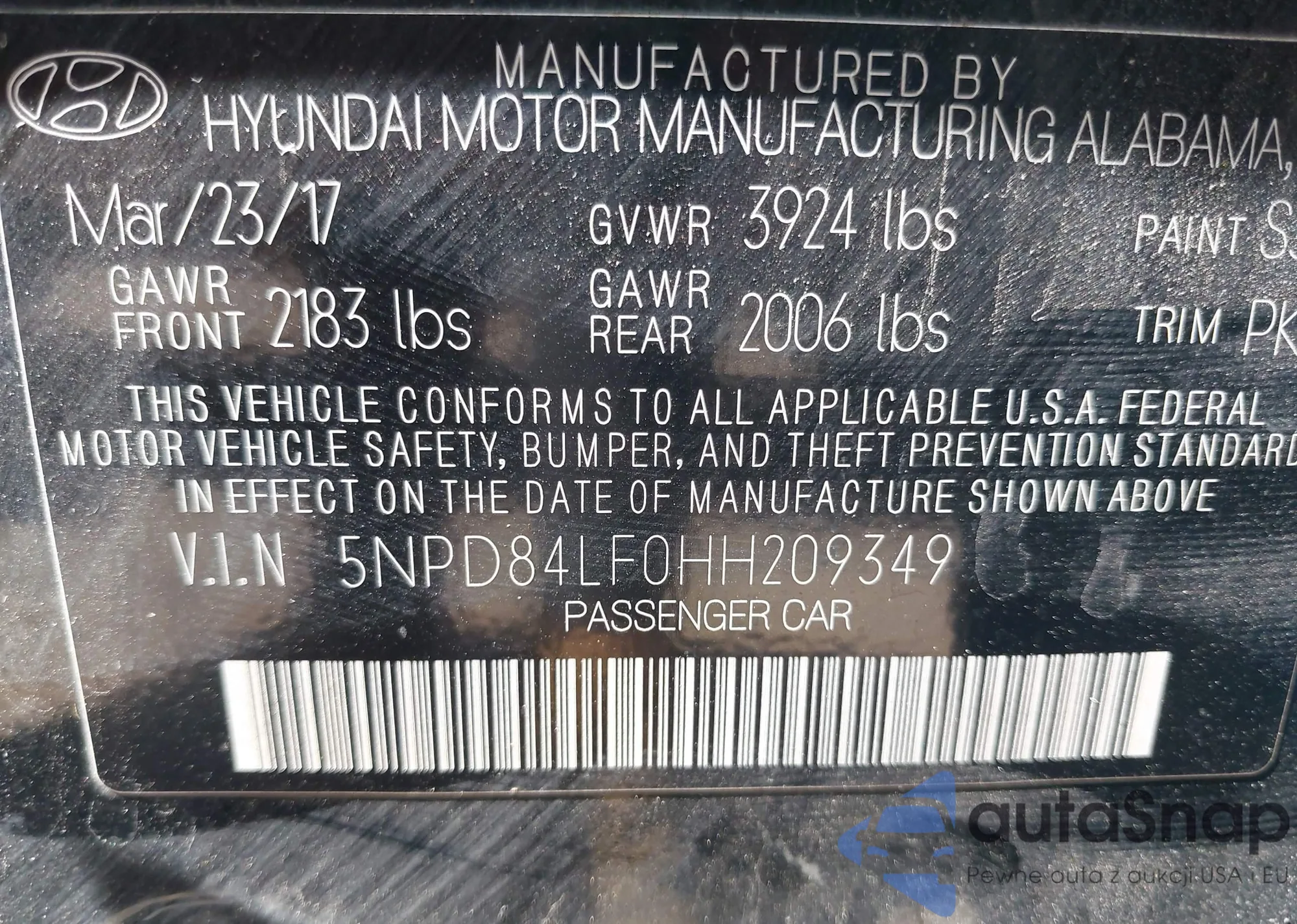 • VIN 5NPD84LF0HH209349