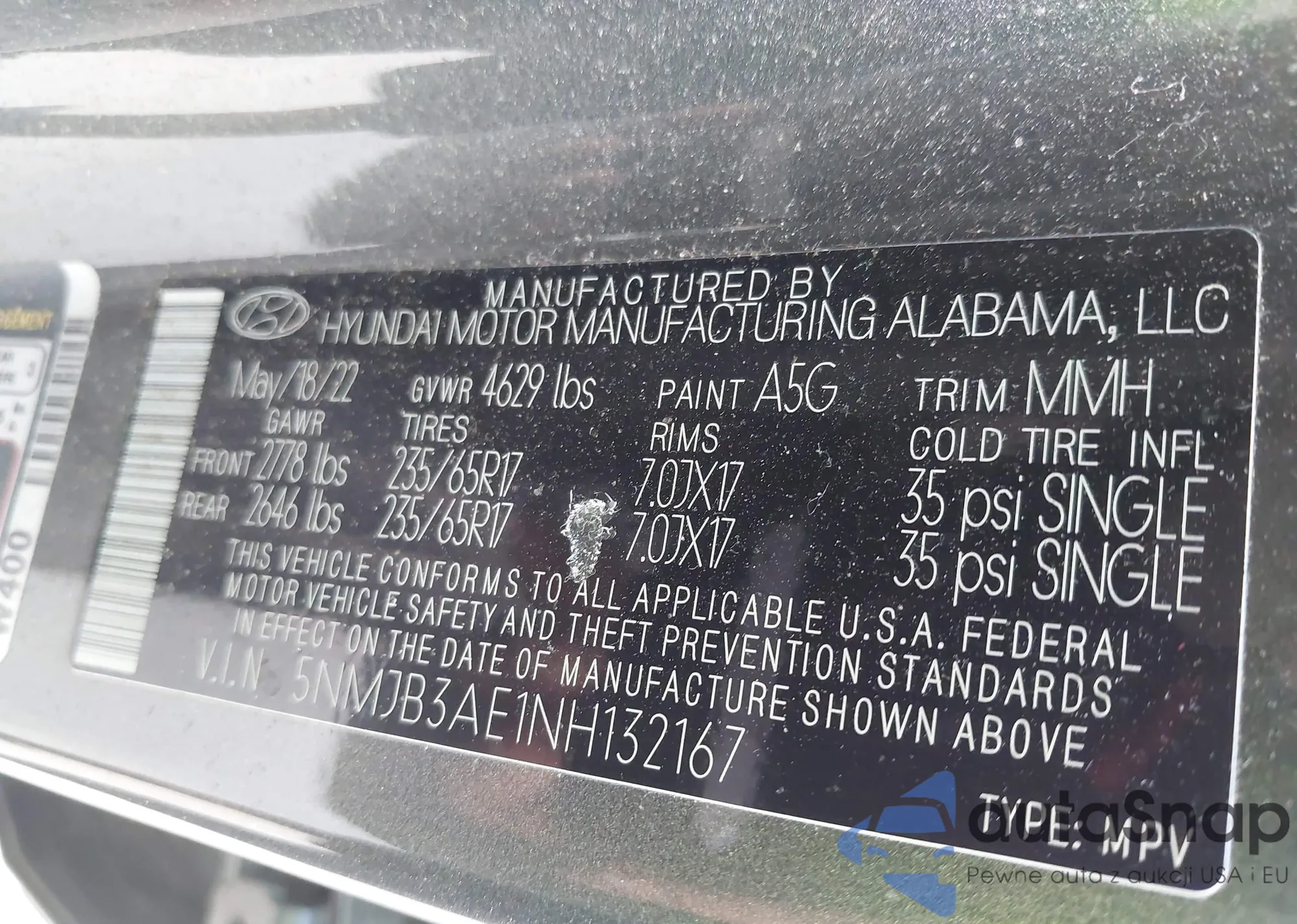 • VIN 5NMJB3AE1NH132167