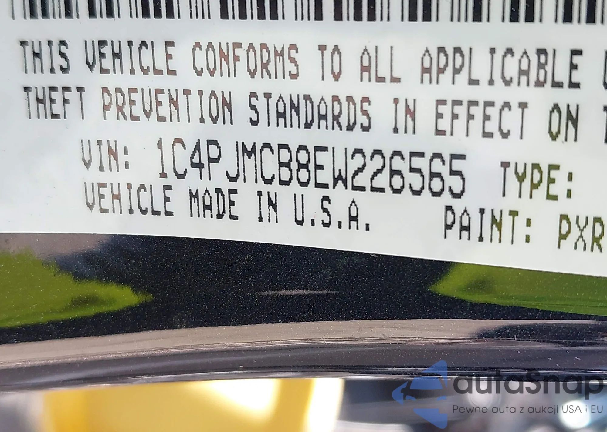 LOT: 43435107 VIN: 1C4PJMCB8EW226565