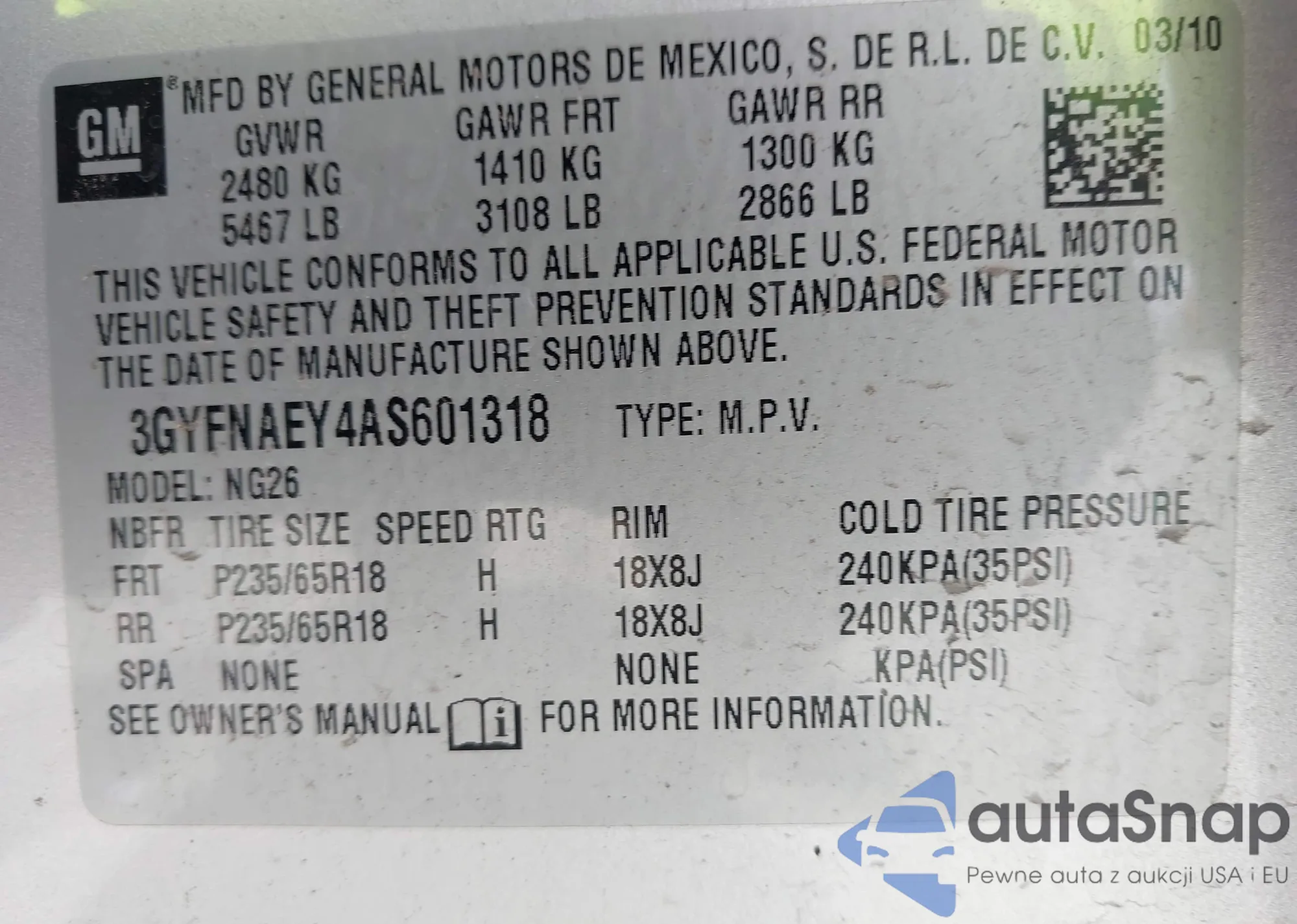 LOT: 43447306 VIN: JM3KE4DY8G0842121