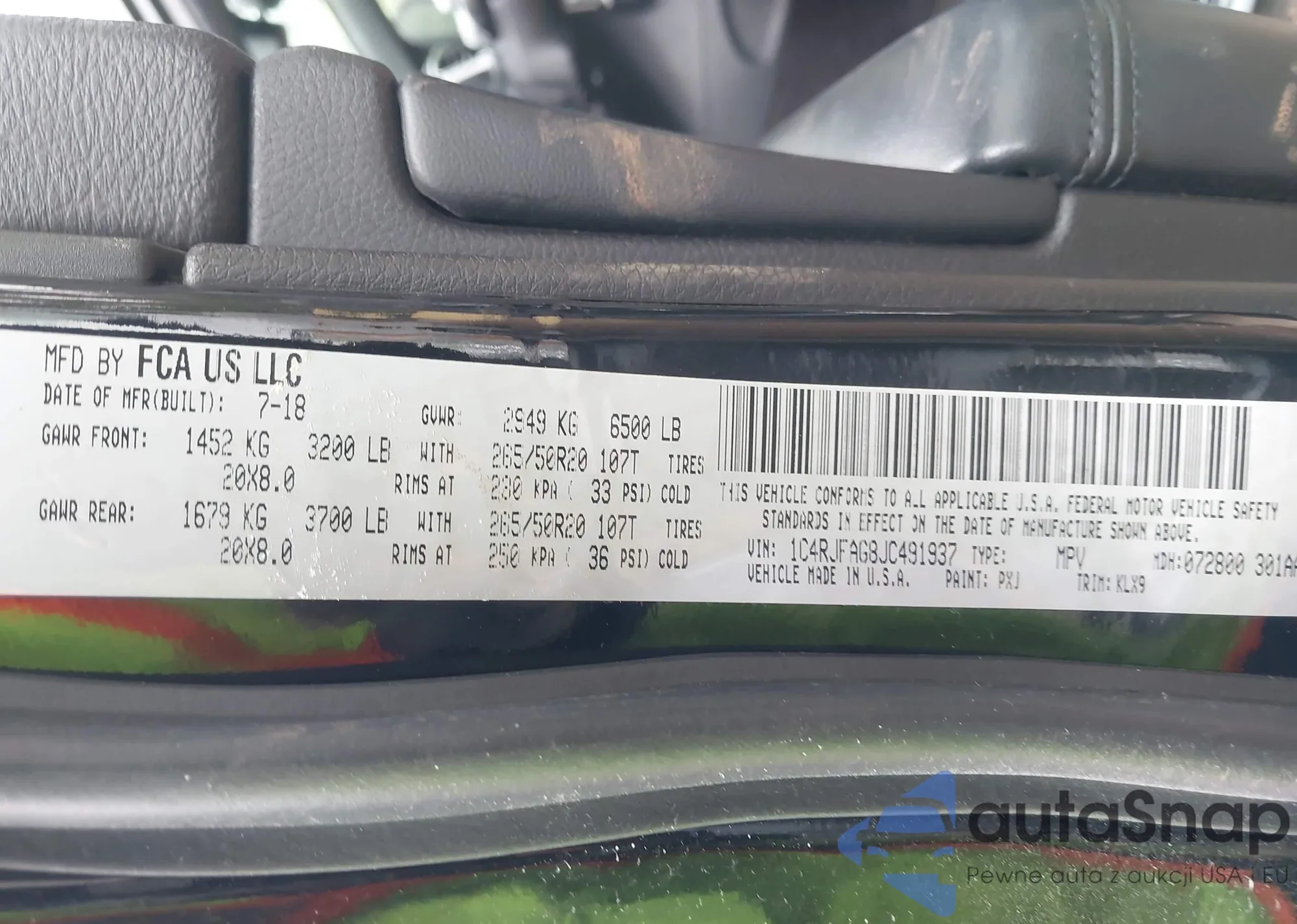 • VIN 1C4RJFAG8JC491937