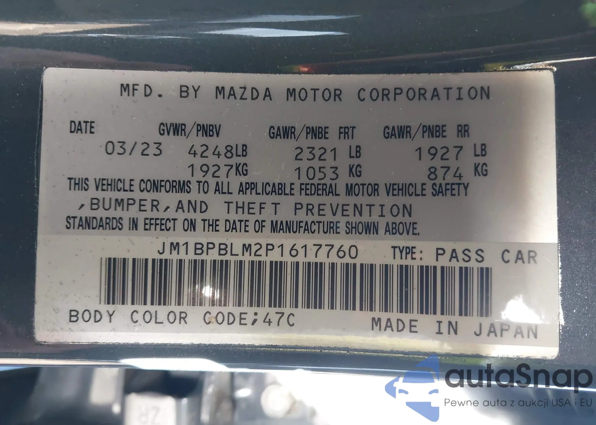 LOT: 43654352 VIN: JM1BPBLM2P1617760