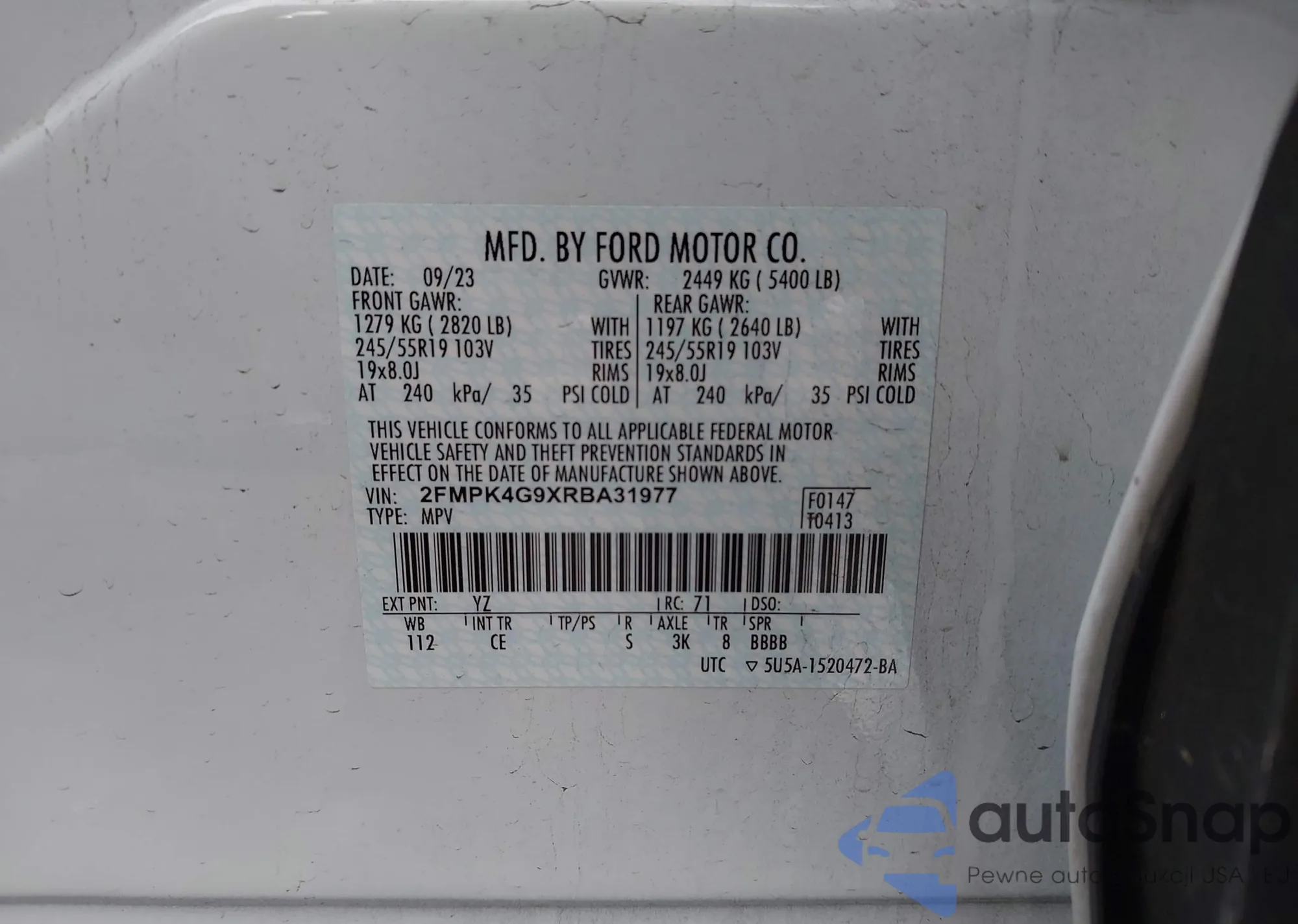 • VIN 2FMPK4G9XRBA31977