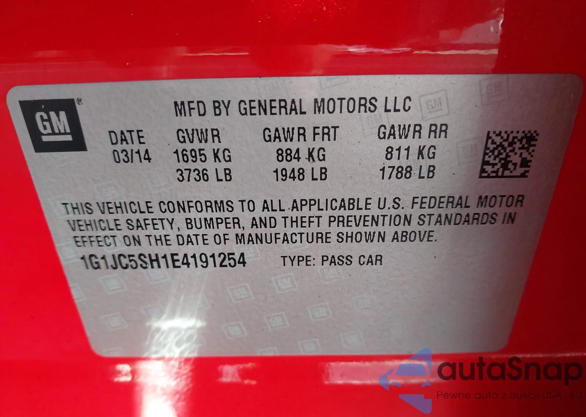 LOT: 43253273 VIN: 1G1JC5SH1E4191254