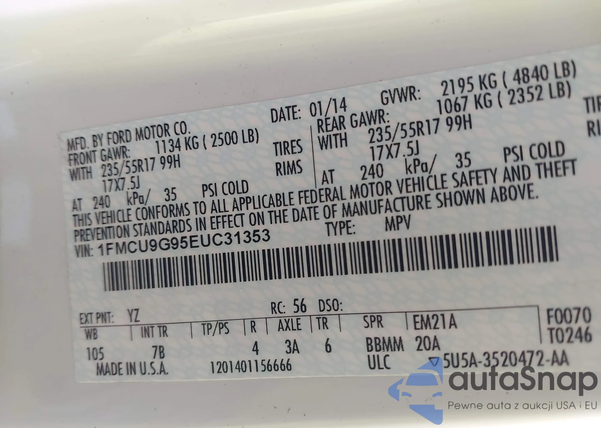 • VIN 1FMCU9G95EUC31353