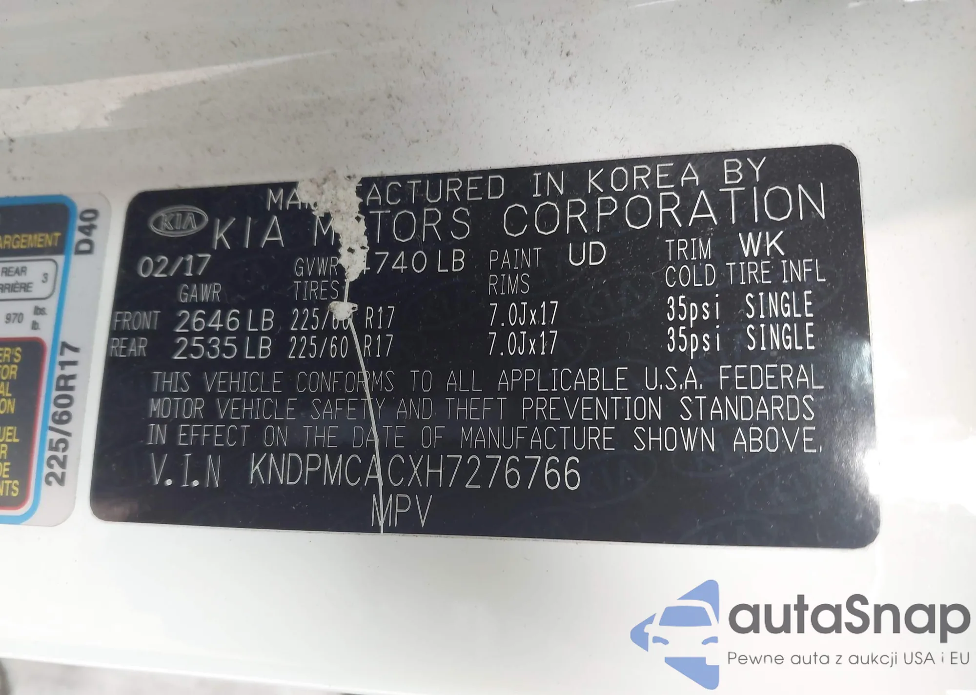 • VIN KNDPMCACXH7276766