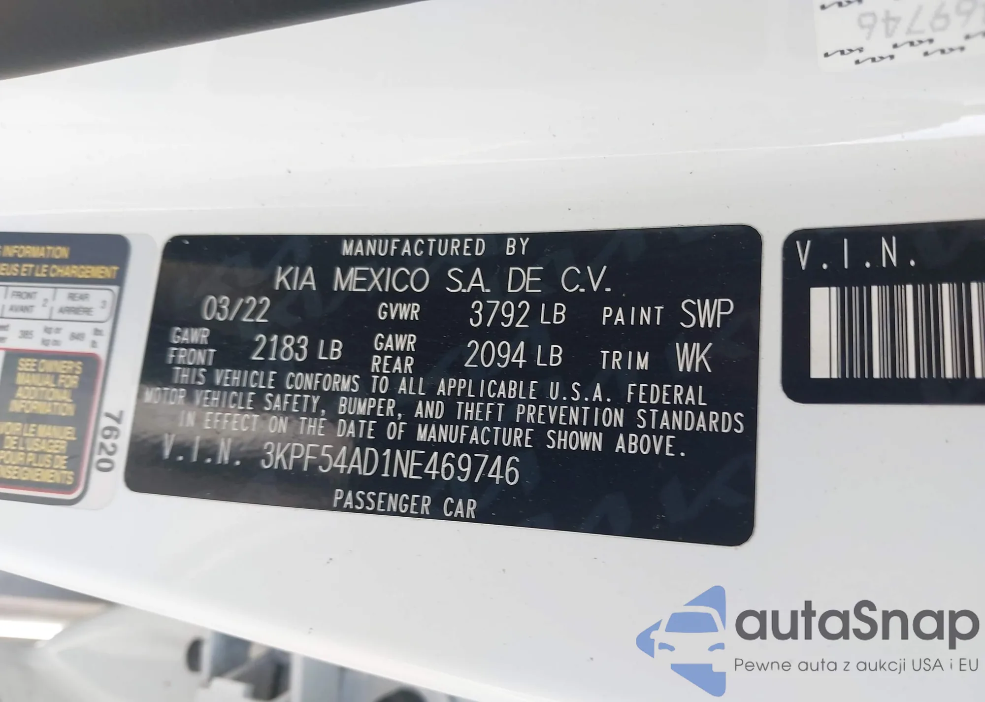 • VIN 3KPF54AD1NE469746