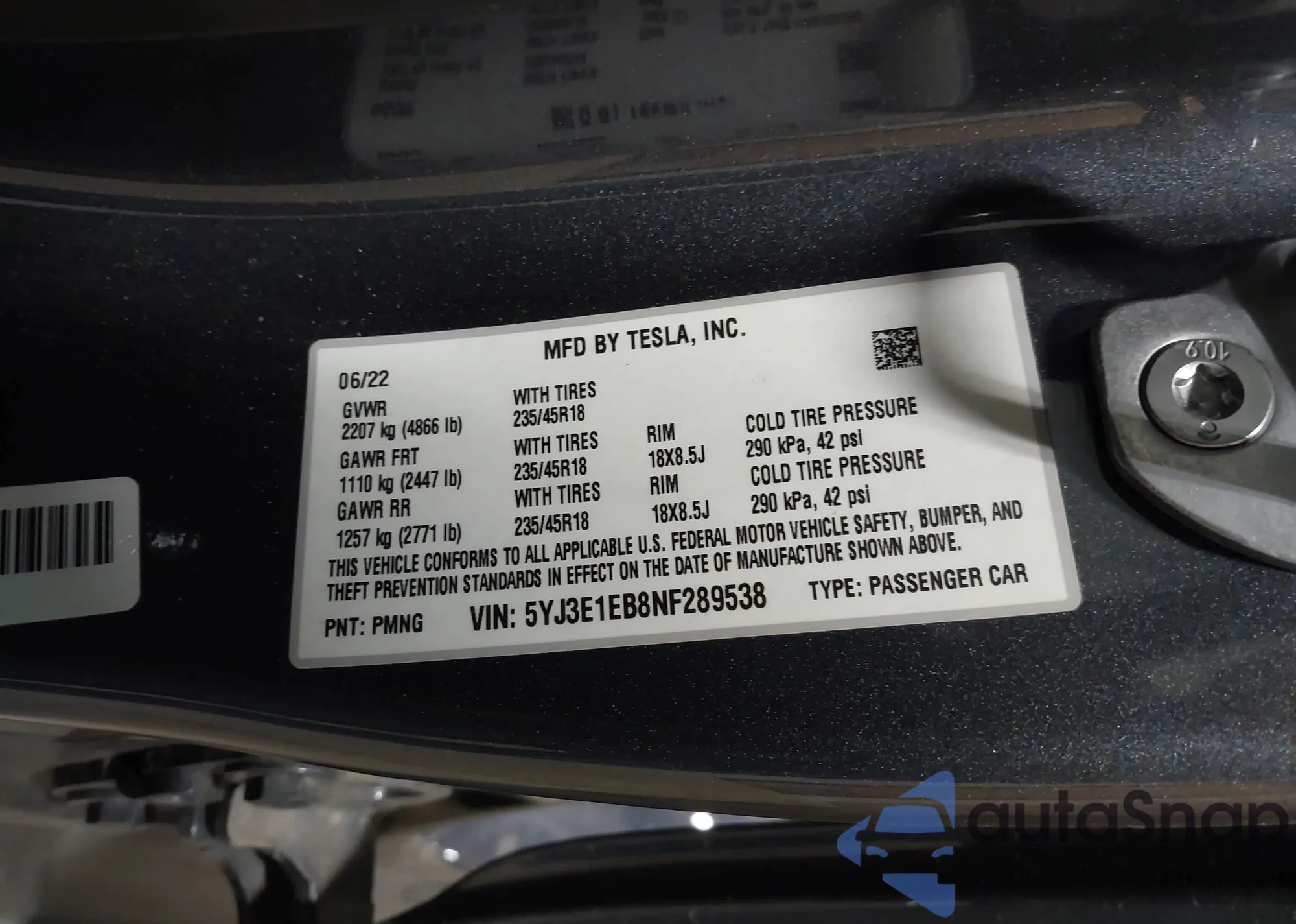 • VIN 5YJ3E1EB8NF289538