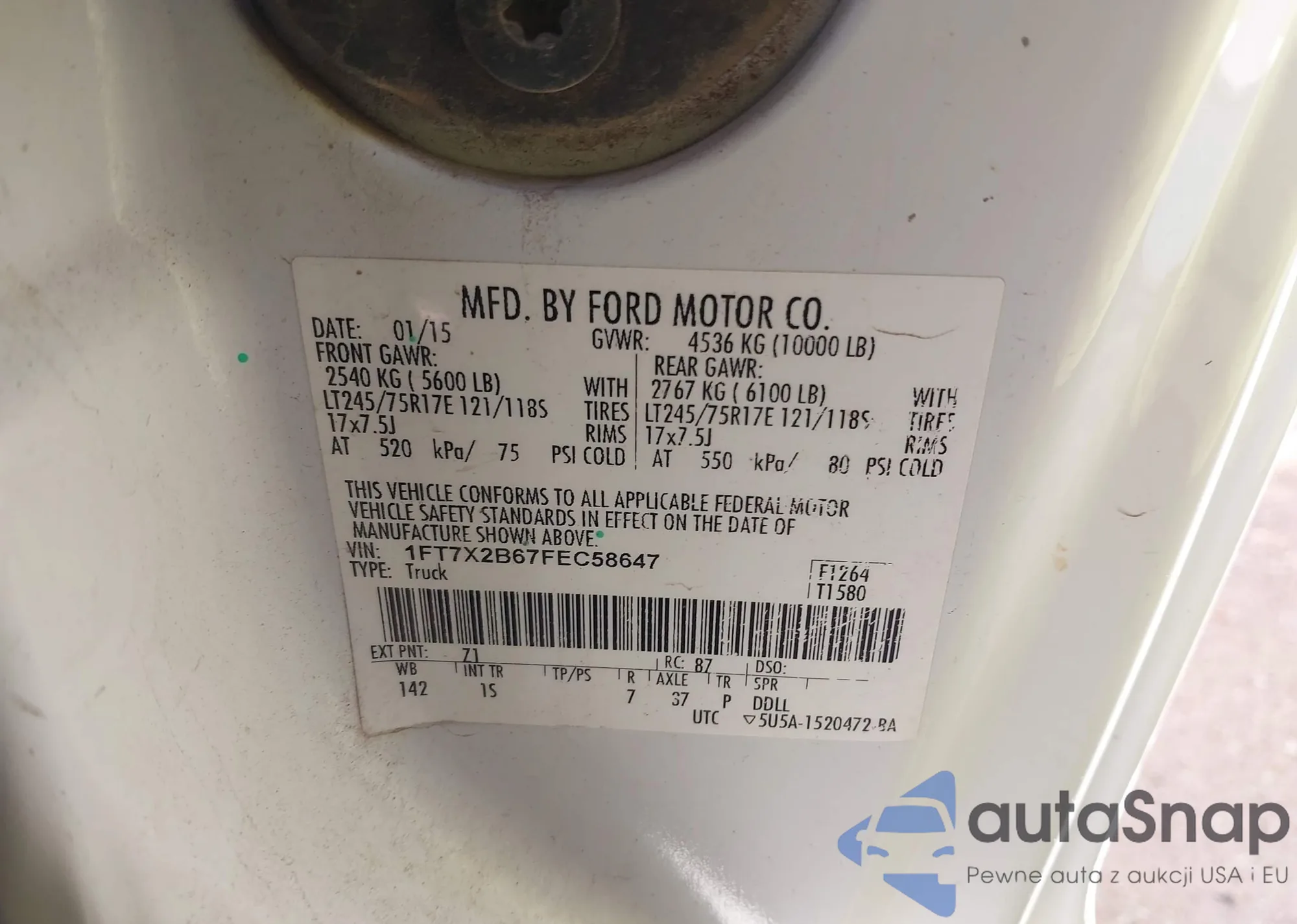 • VIN 1FT7X2B67FEC58647