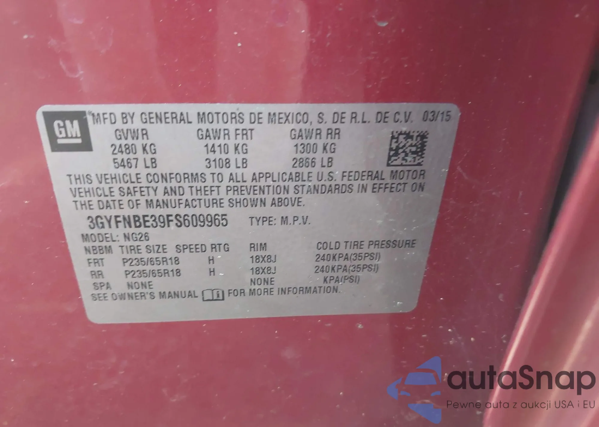 LOT: 43679552 VIN: 2G1145S31G9138958