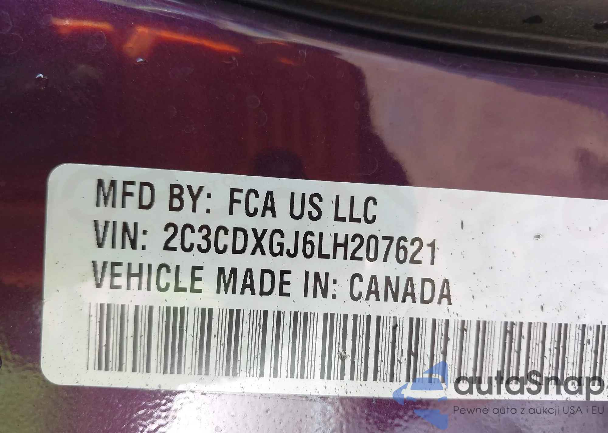 • VIN 2C3CDXGJ6LH207621