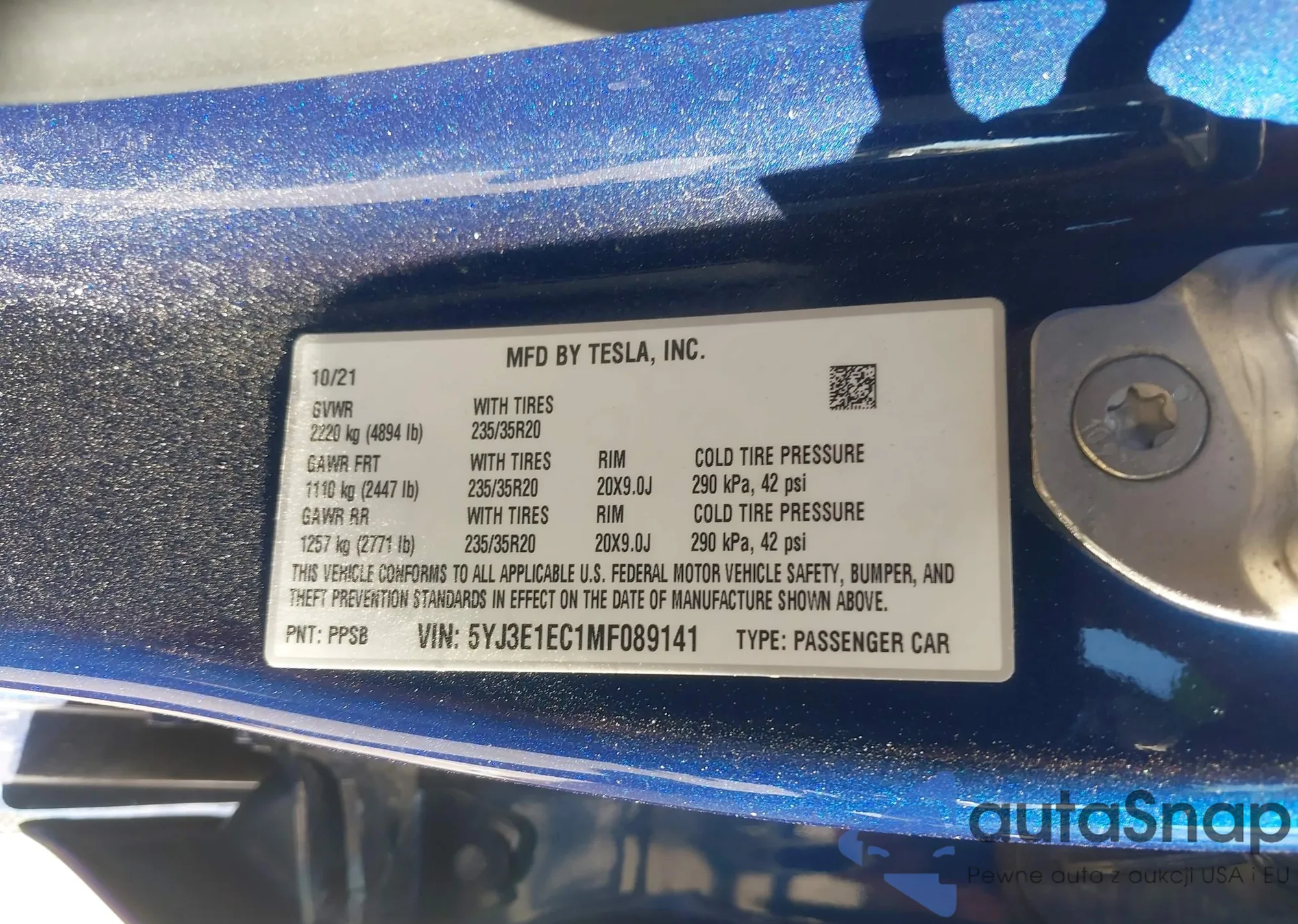 • VIN 5YJ3E1EA3PF446922