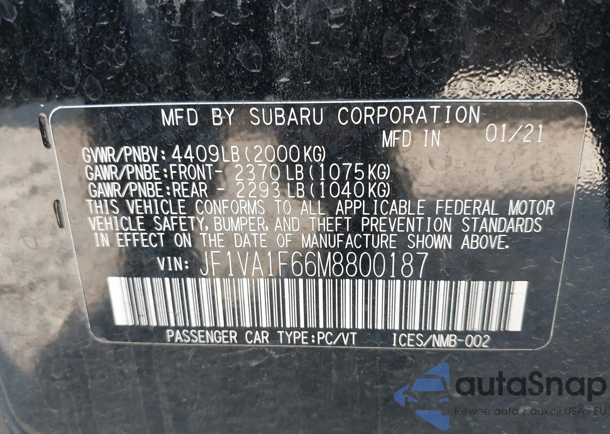 • VIN 2T2ZK1BA7AC030600