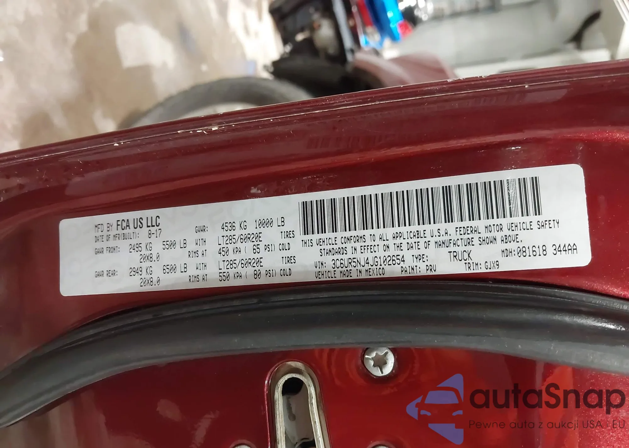 LOT: 42751854 VIN: 5TFAX5GN5JX107374