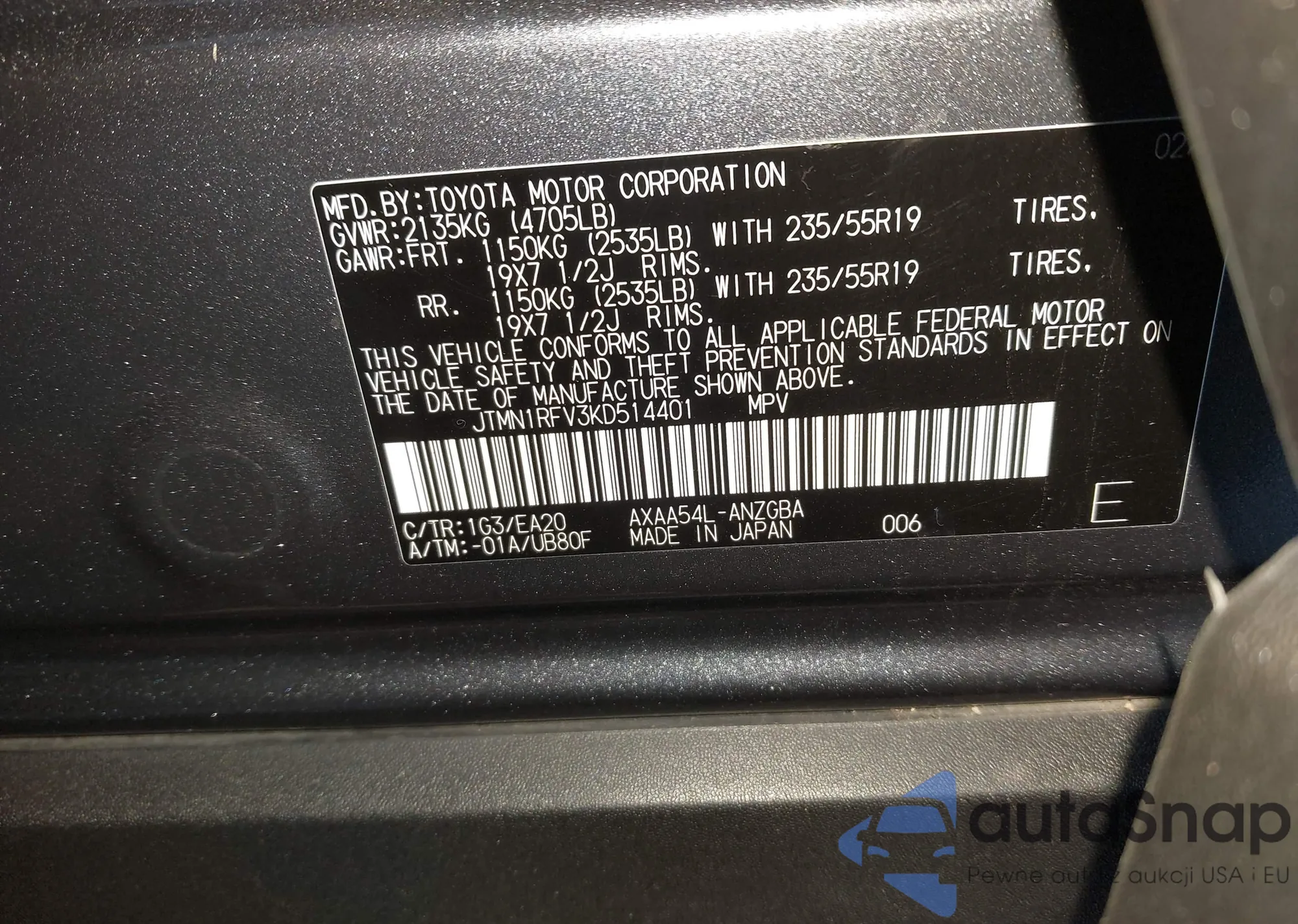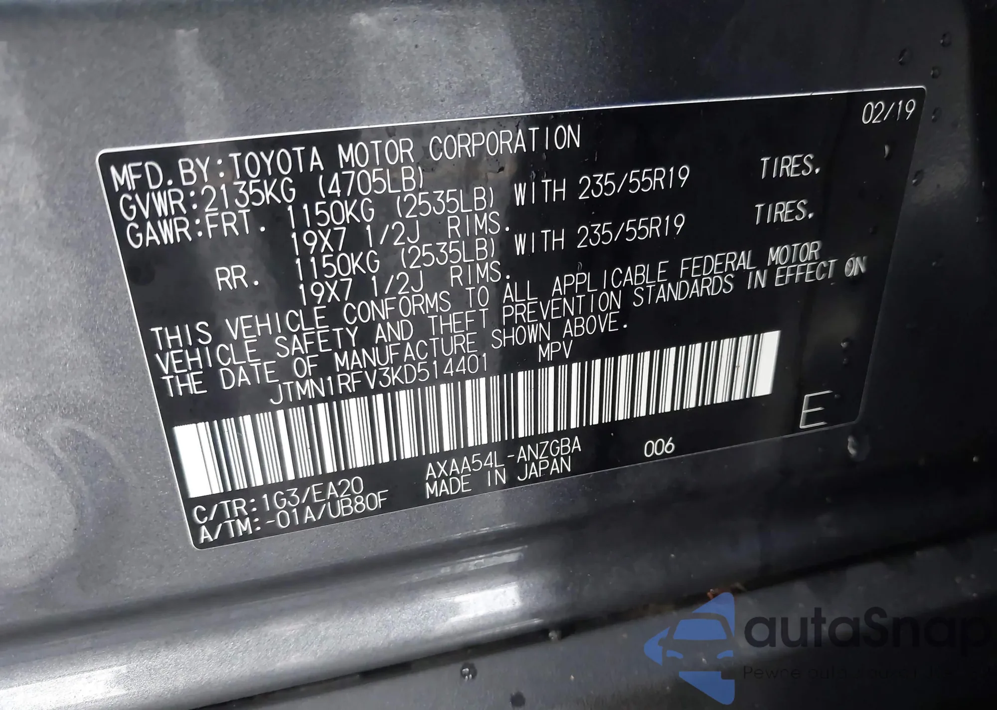 • VIN JTMN1RFV3KD514401