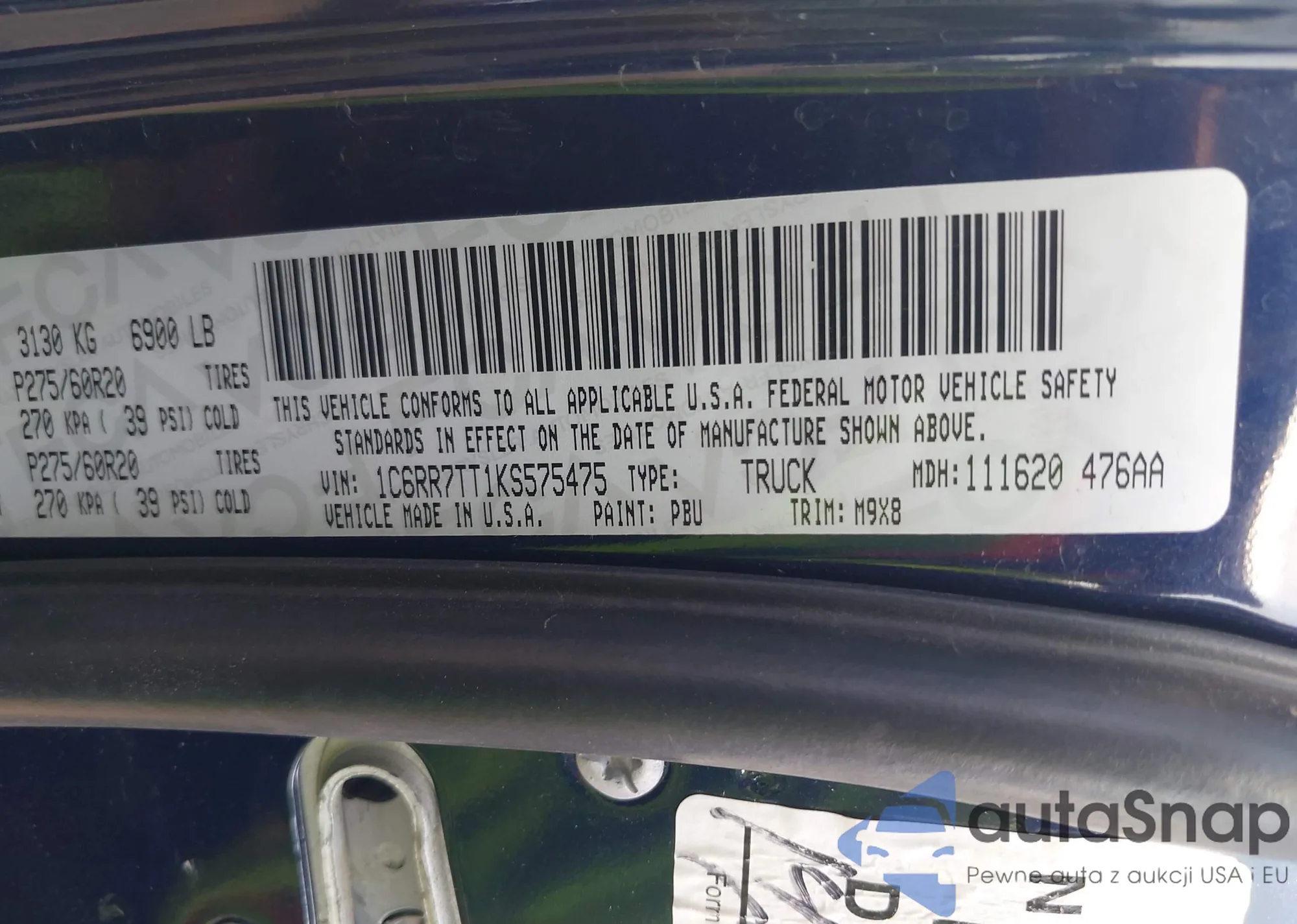 • VIN 1C6RR7TT1KS575475