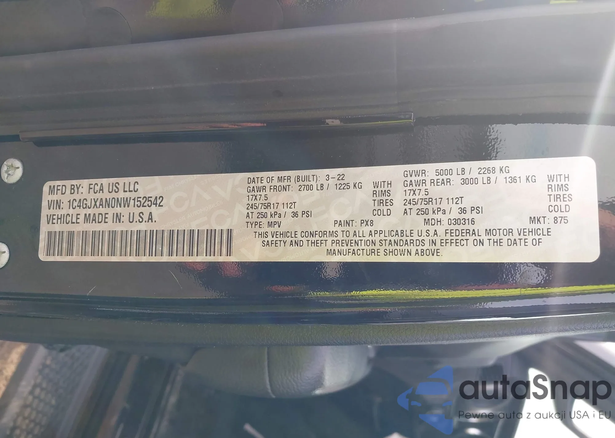 • VIN 1C4GJXAN0NW152542