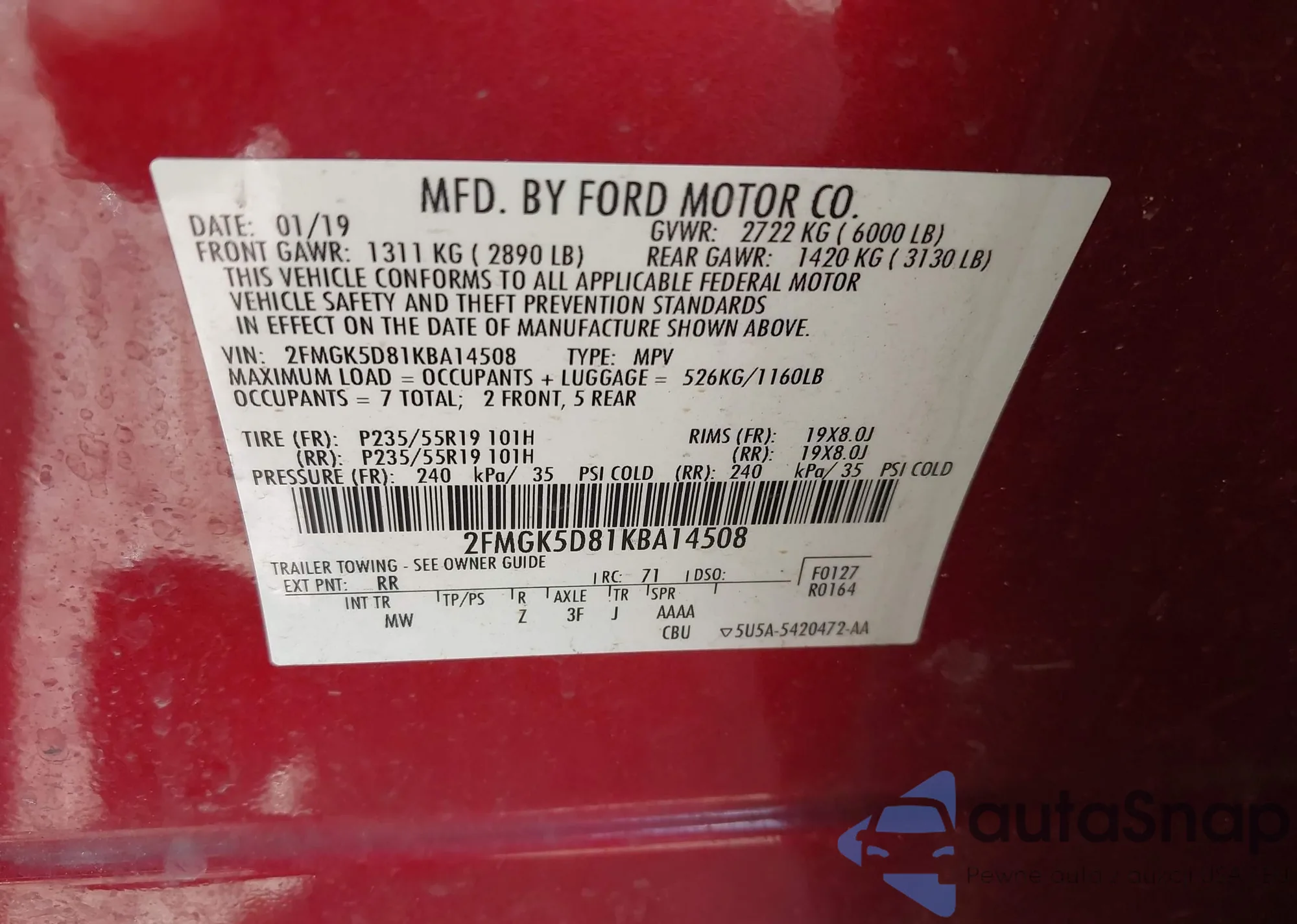 • VIN 3FADP4TJ8EM241503