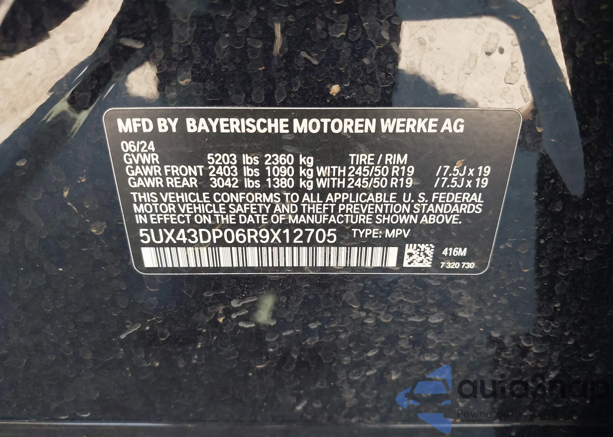 • VIN 5UX43DP06R9X12705