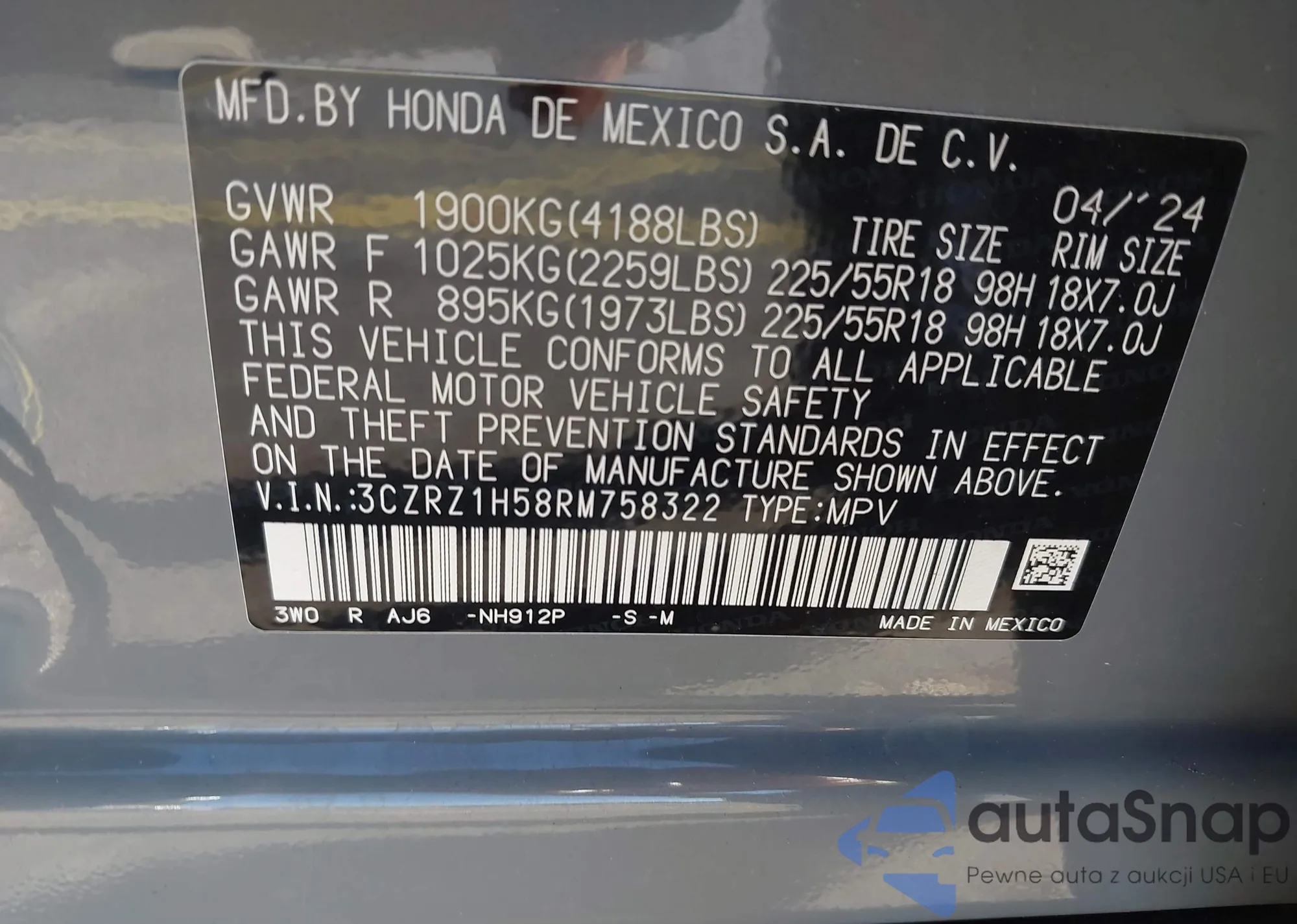 • VIN 3CZRZ1H58RM758322