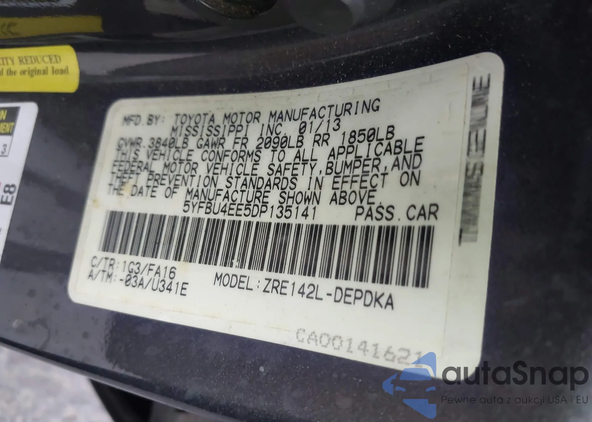 • VIN 5YFBU4EE5DP135141