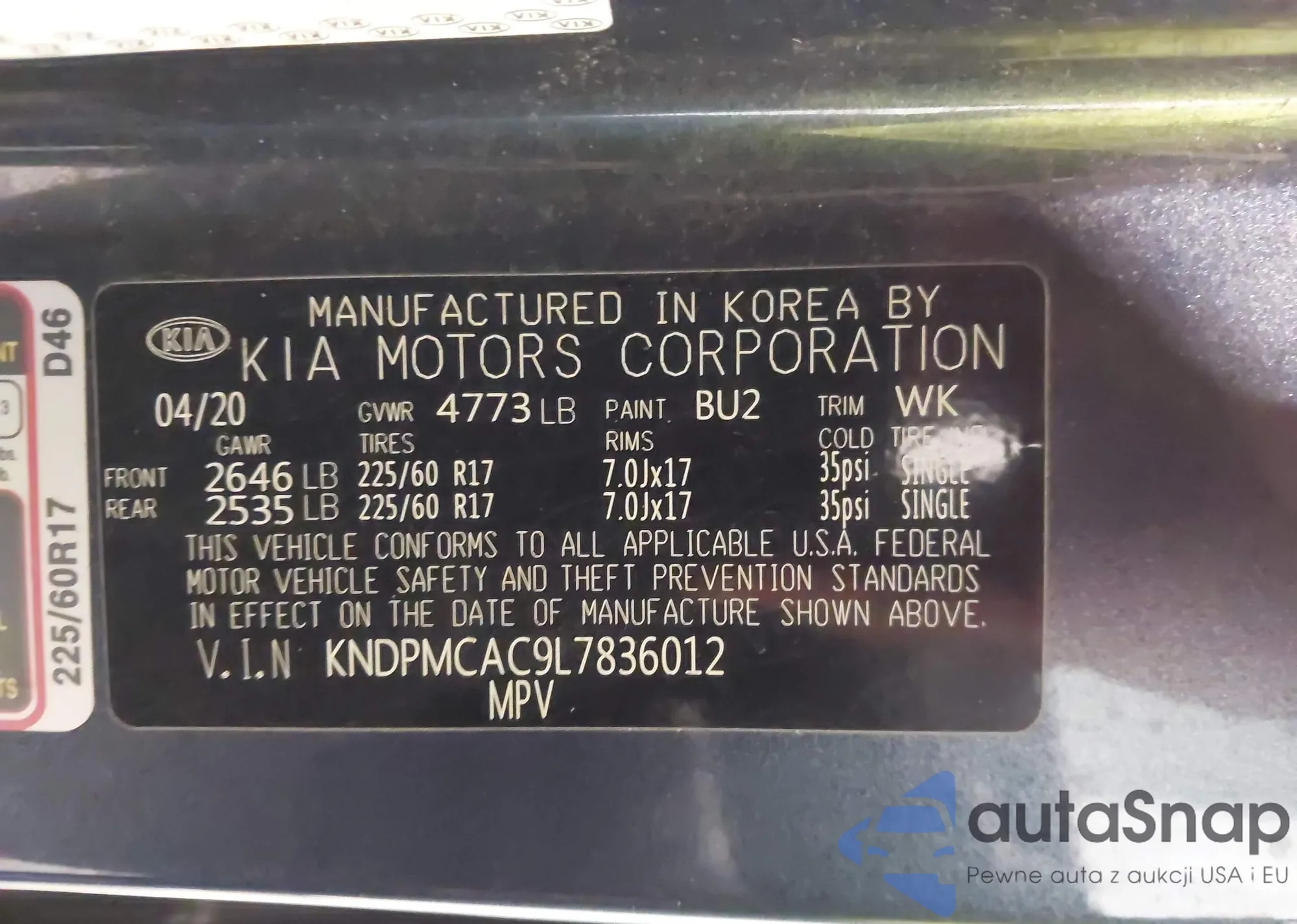 • VIN KNDPMCAC9L7836012