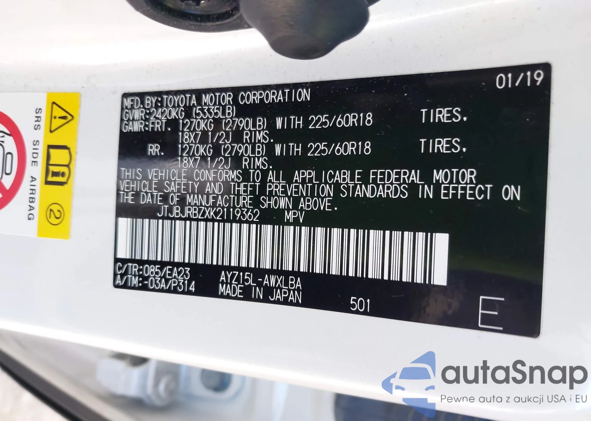 • VIN JTJBJRBZXK2119362