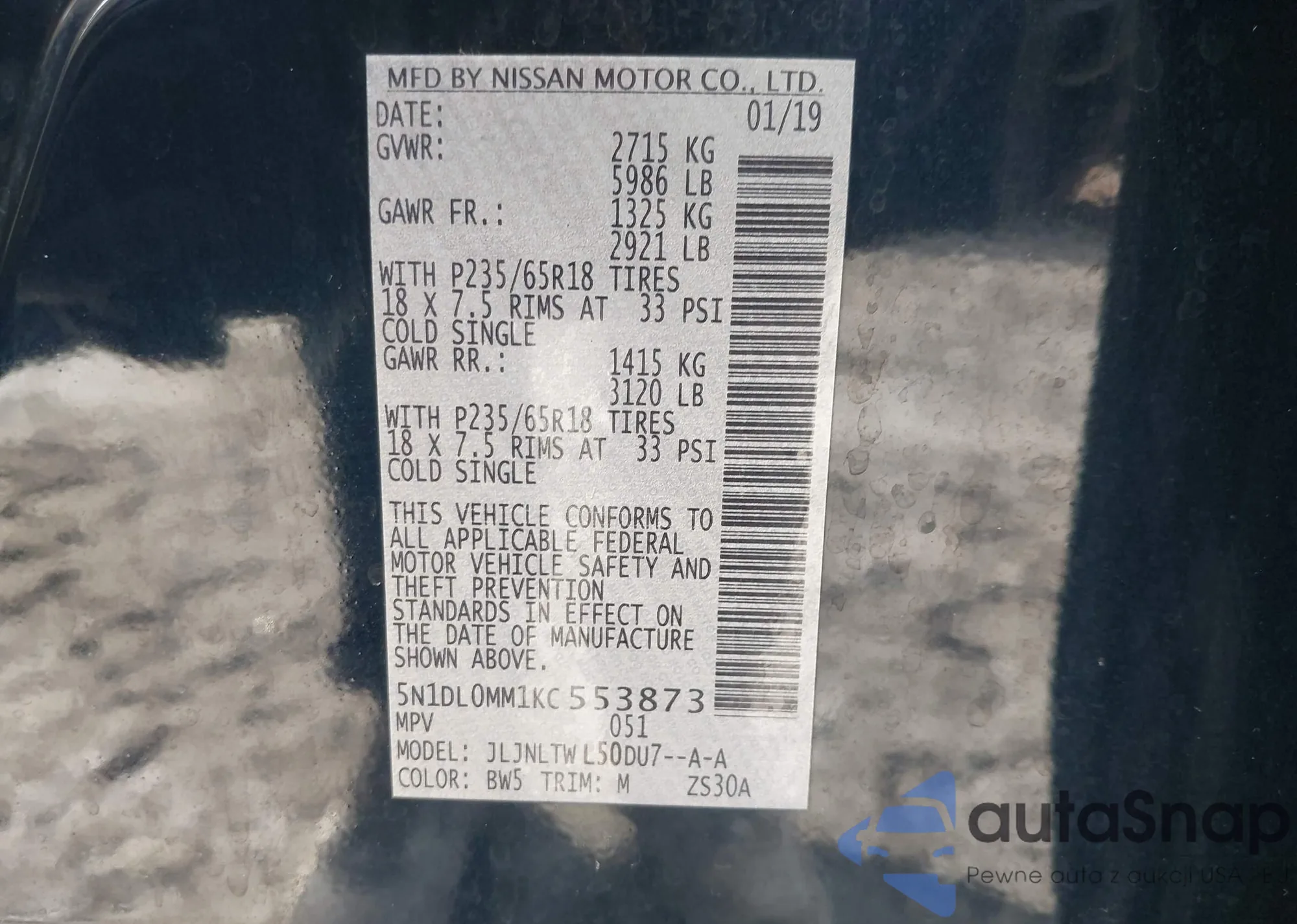 • VIN 5N1DL0MM1KC553873