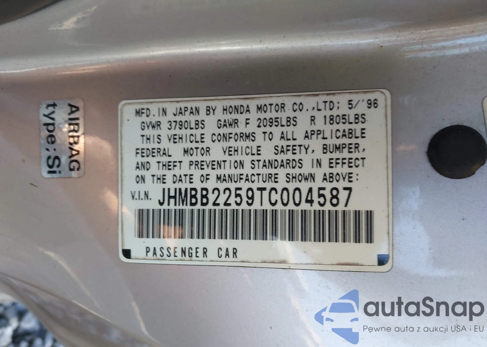 • VIN JHMBB2259TC004587