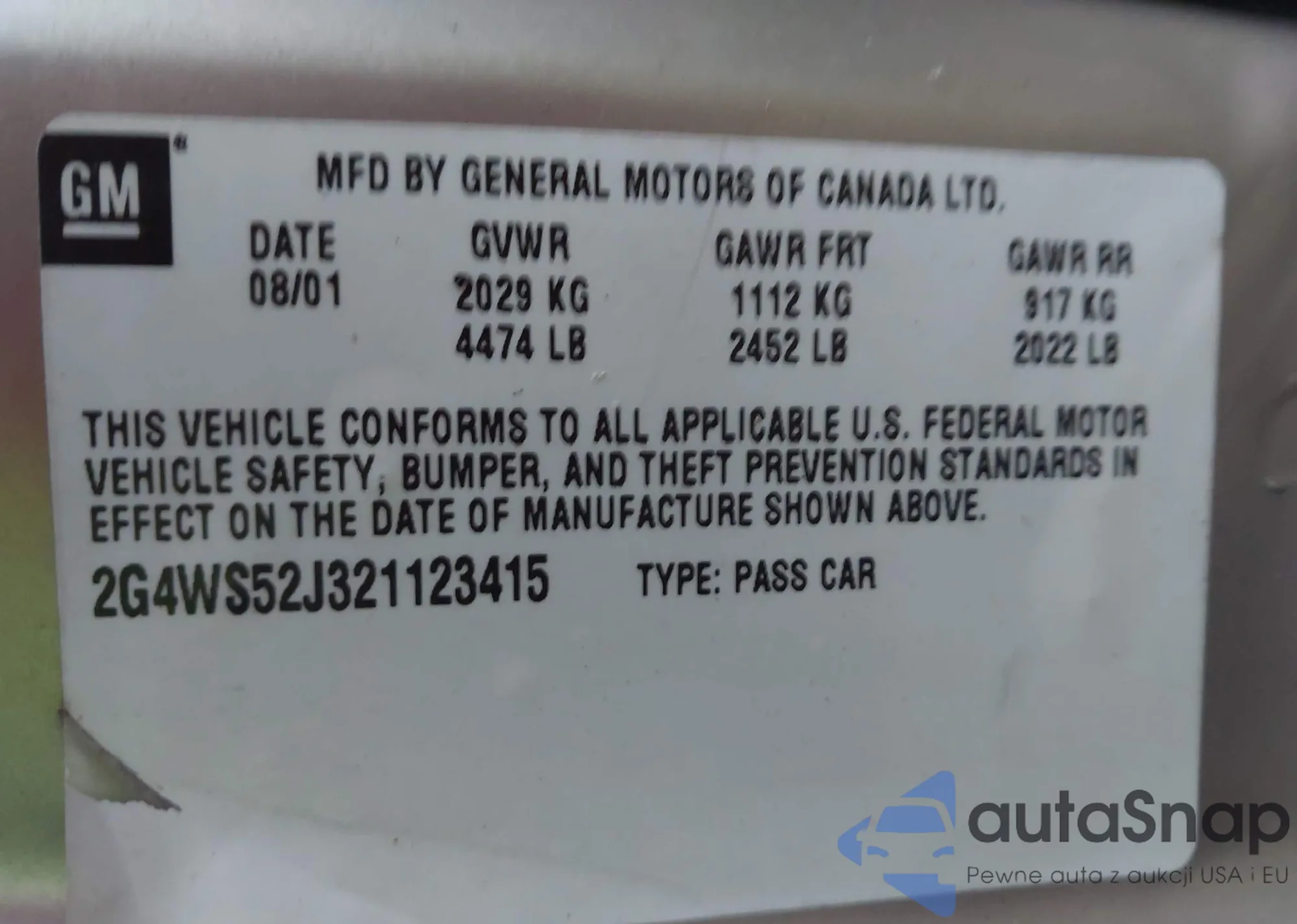 • VIN 1G6KF57934U203460