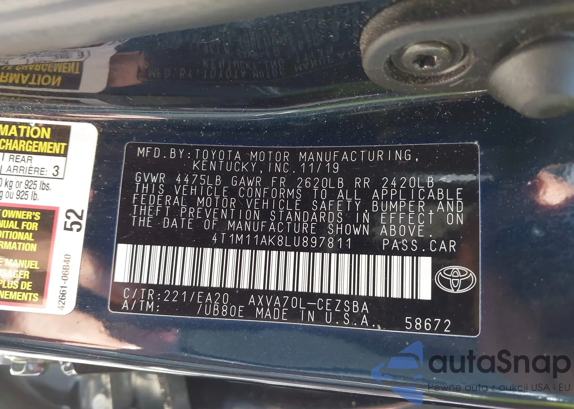LOT: 43909887 VIN: JTHBE262772008401
