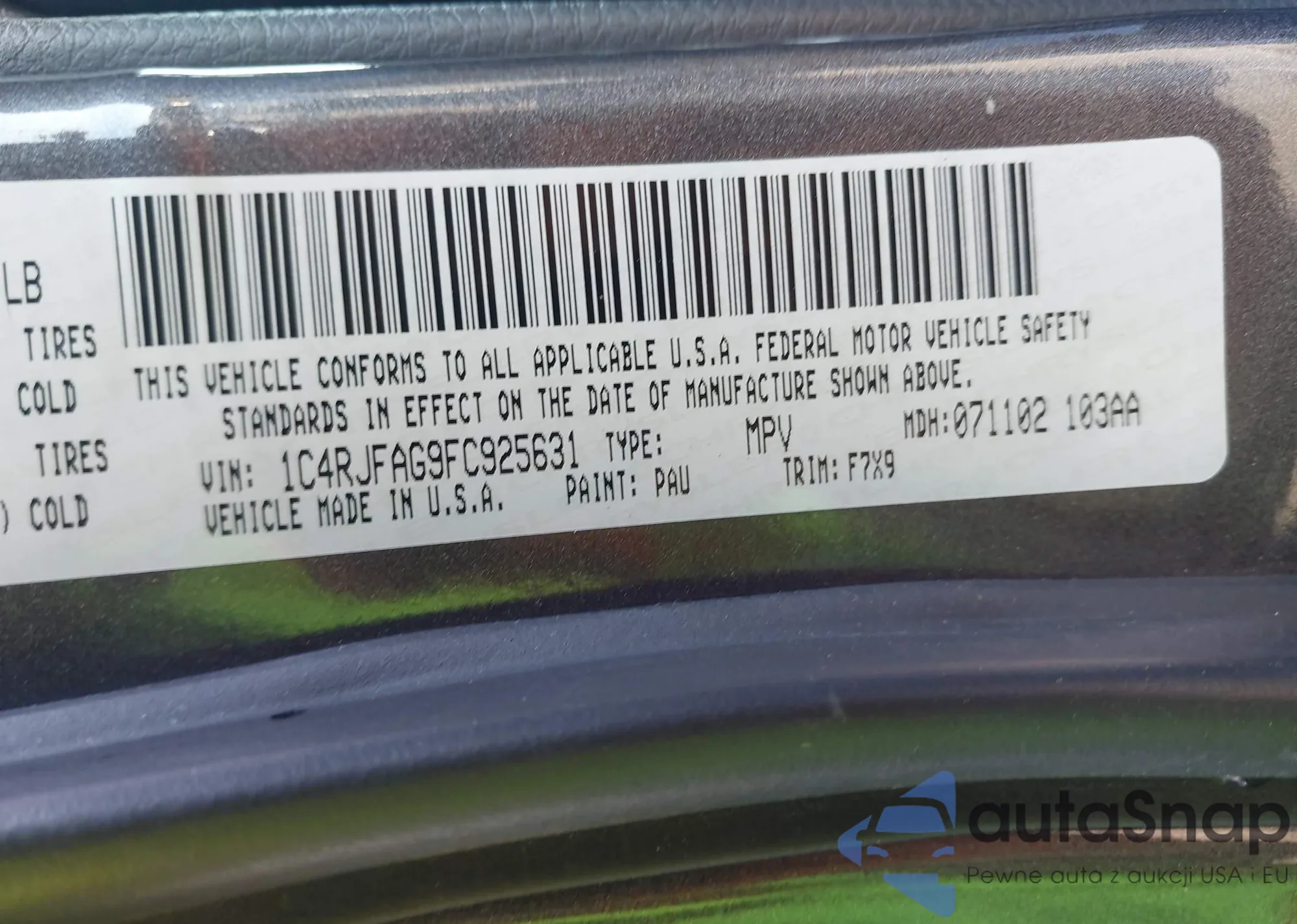 • VIN 1C4RJFAG9FC925631