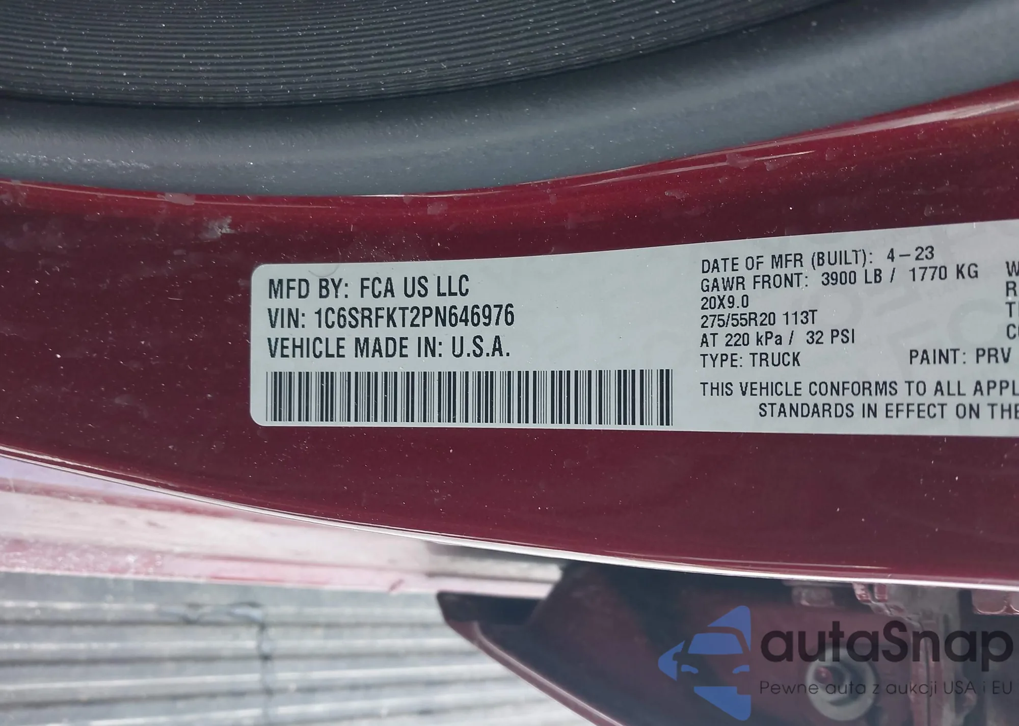 • VIN 1C6SRFKT2PN646976