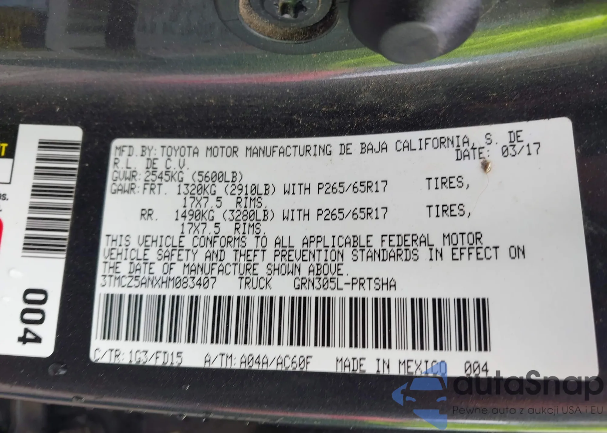 • VIN 3TMCZ5ANXHM083407