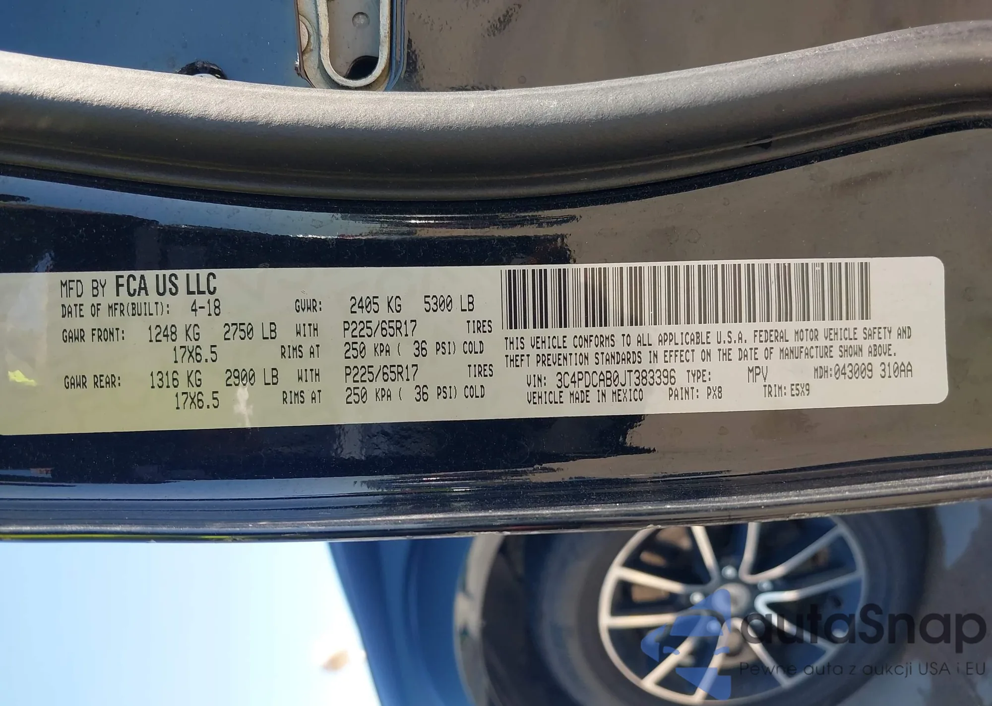 LOT: 43602212 VIN: 3C4PDCAB0JT383396