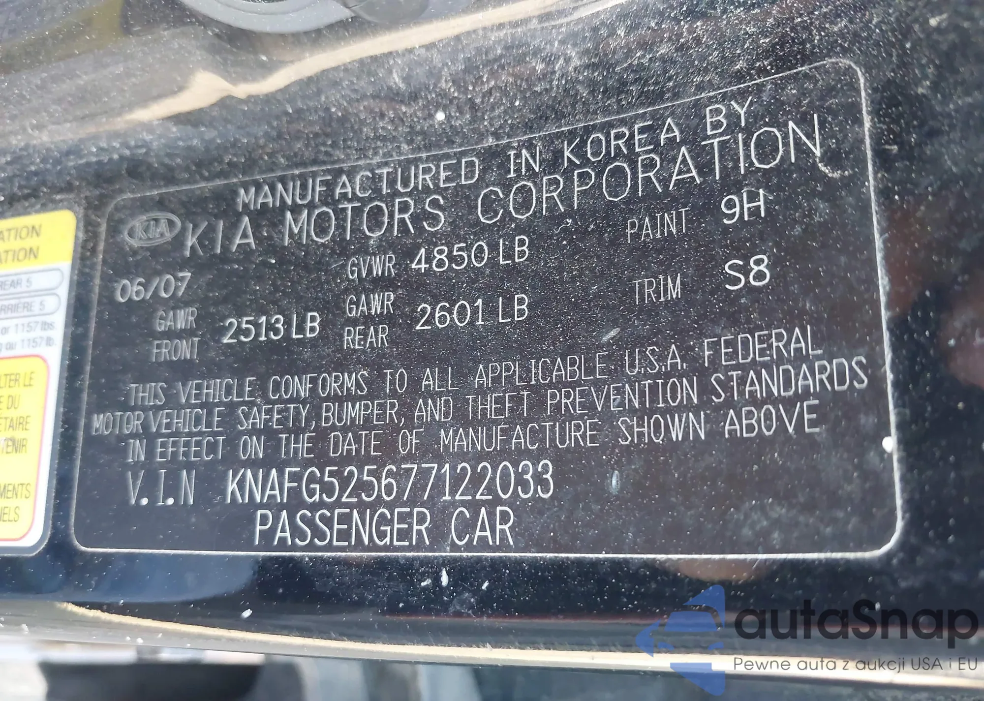 LOT: 43701064 VIN: KNAFG525677122033