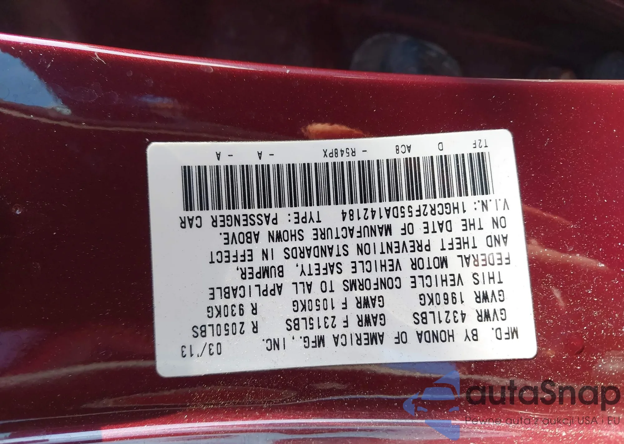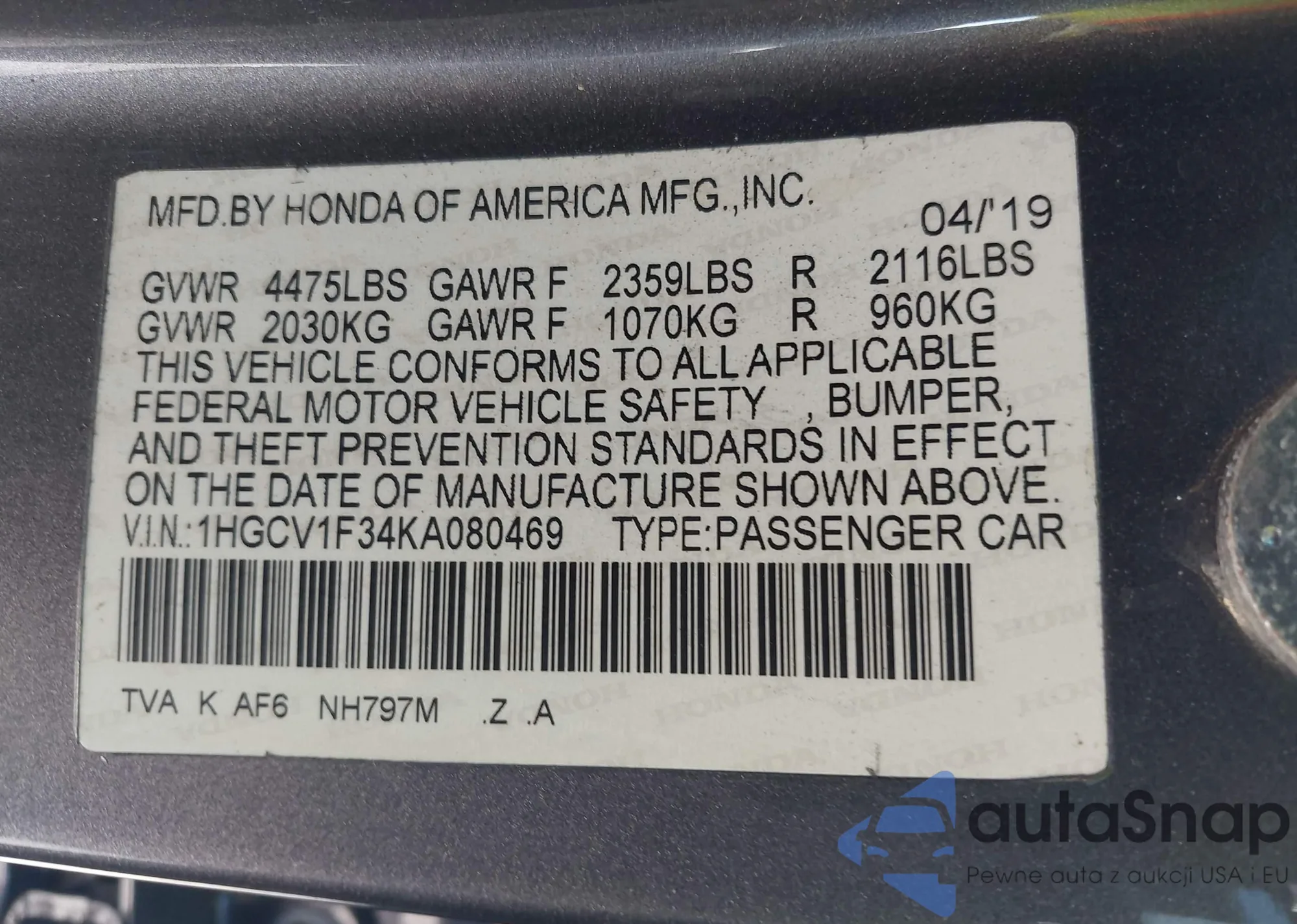 • VIN 1HGCV1F34KA080469
