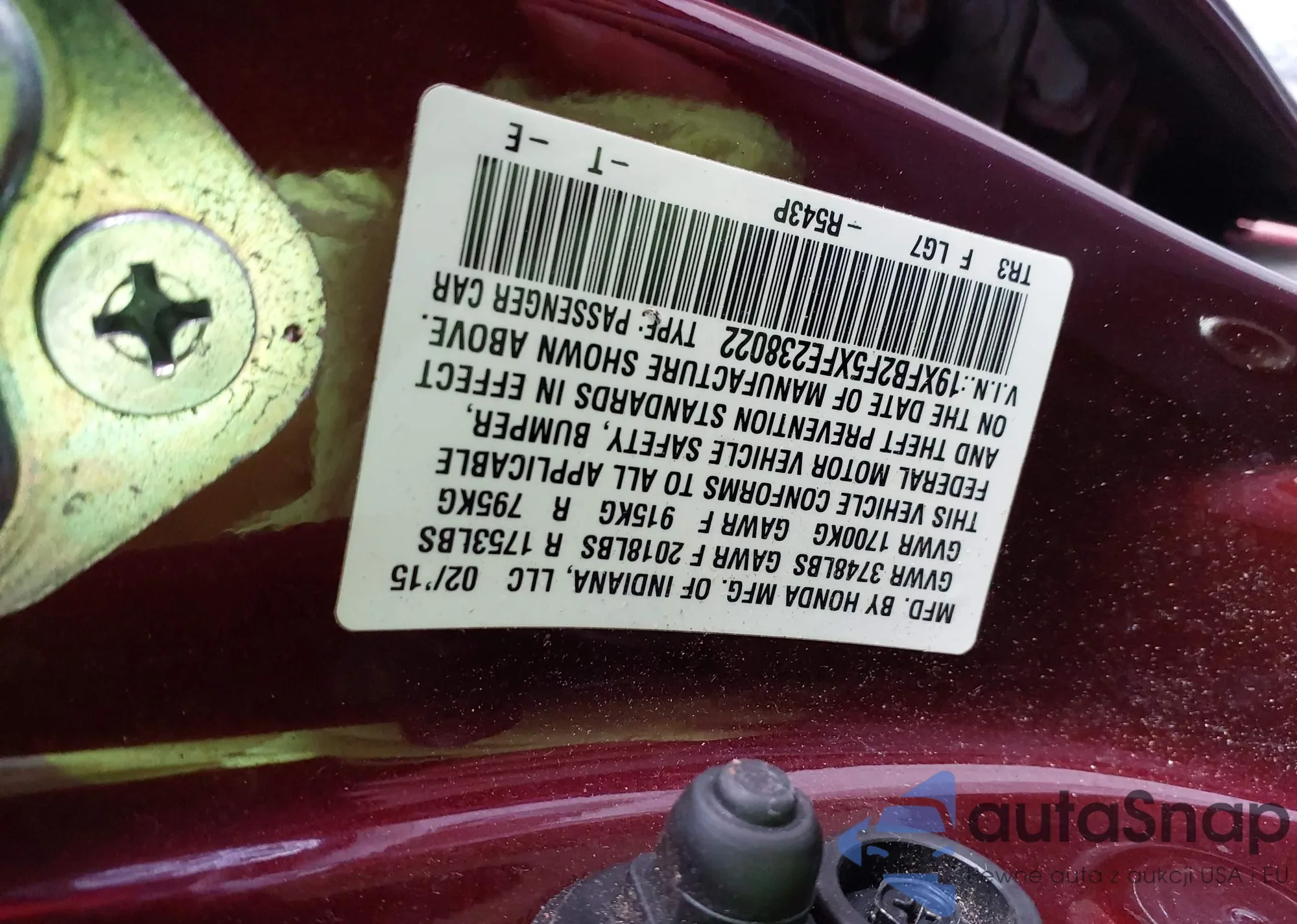 LOT: 43712540 VIN: 19XFB2F5XFE238022