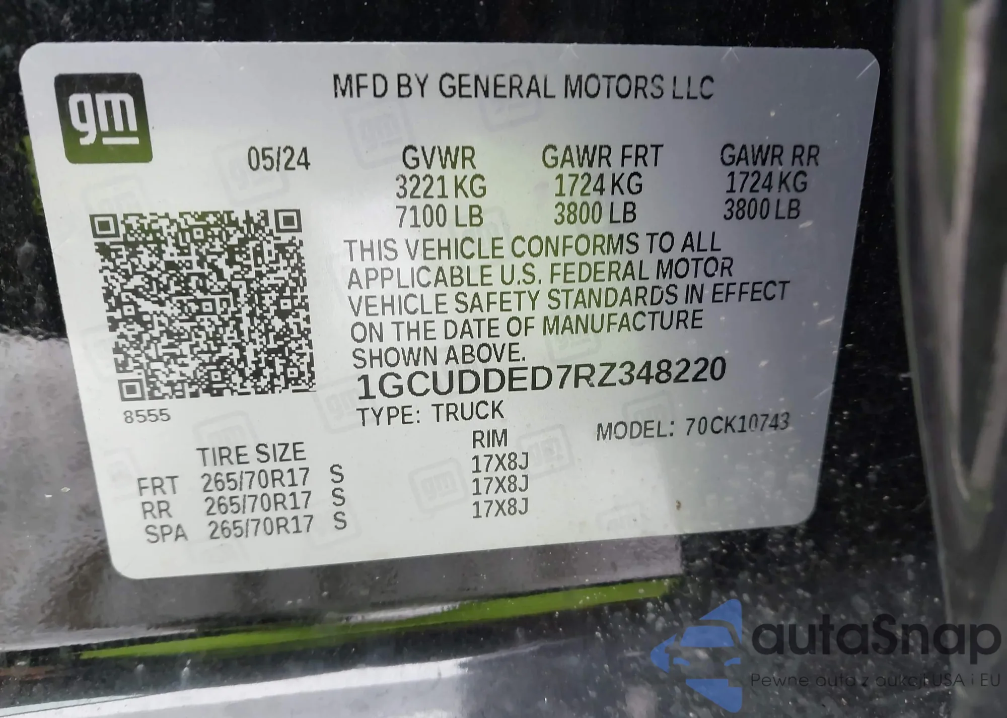 • VIN 3GTRKVE39AG207470