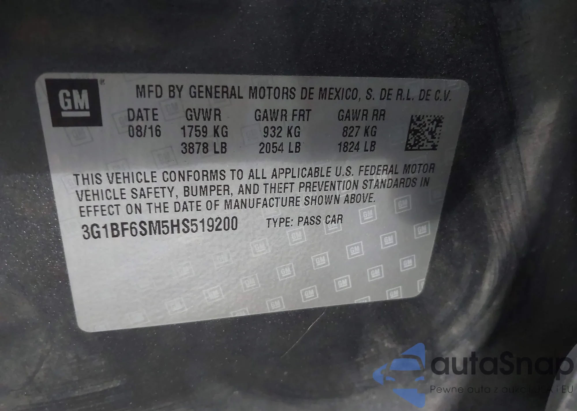 LOT: 43845632 VIN: 3G1BF6SM5HS519200