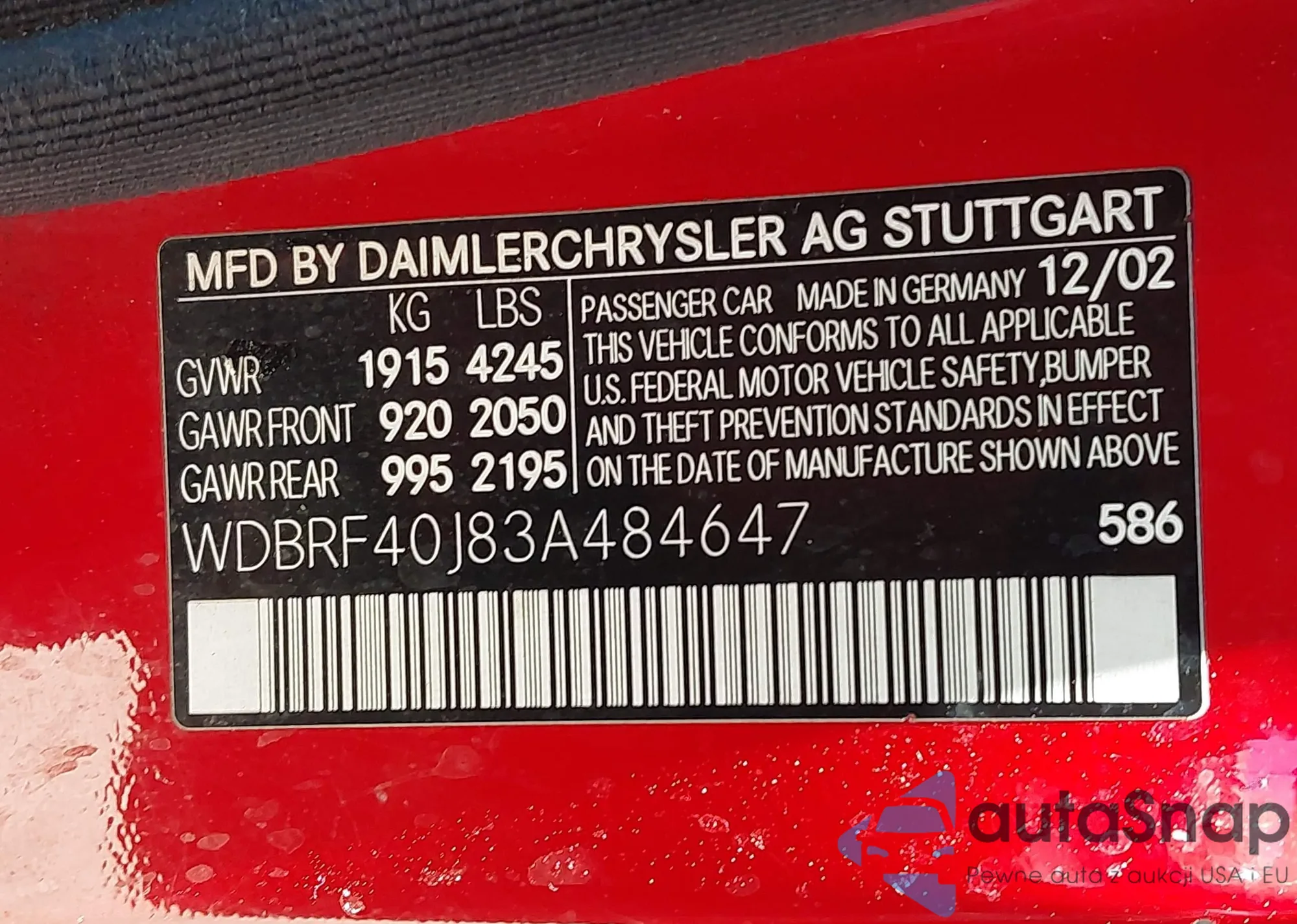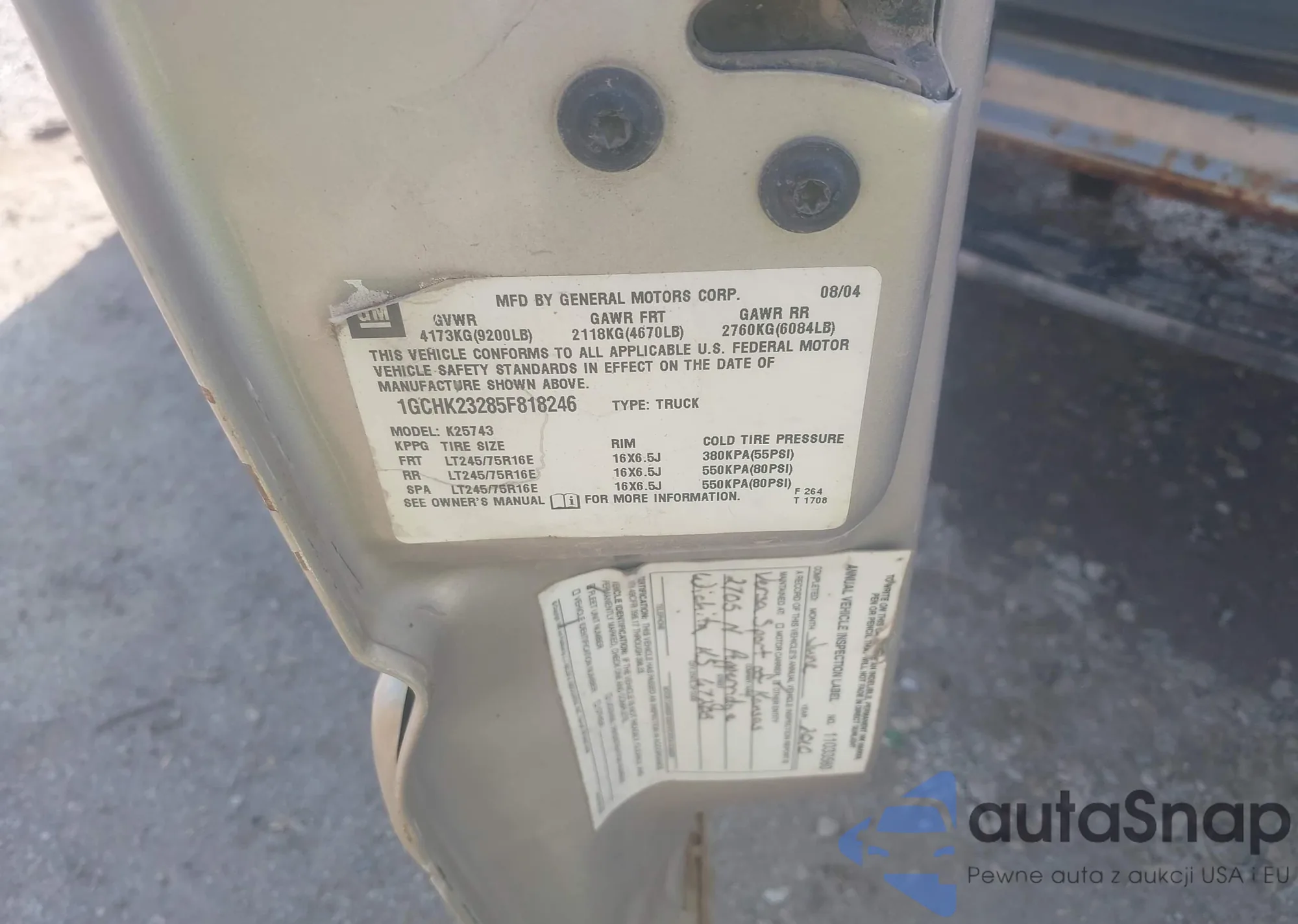 LOT: 43292468 VIN: 1GCHK23285F818246