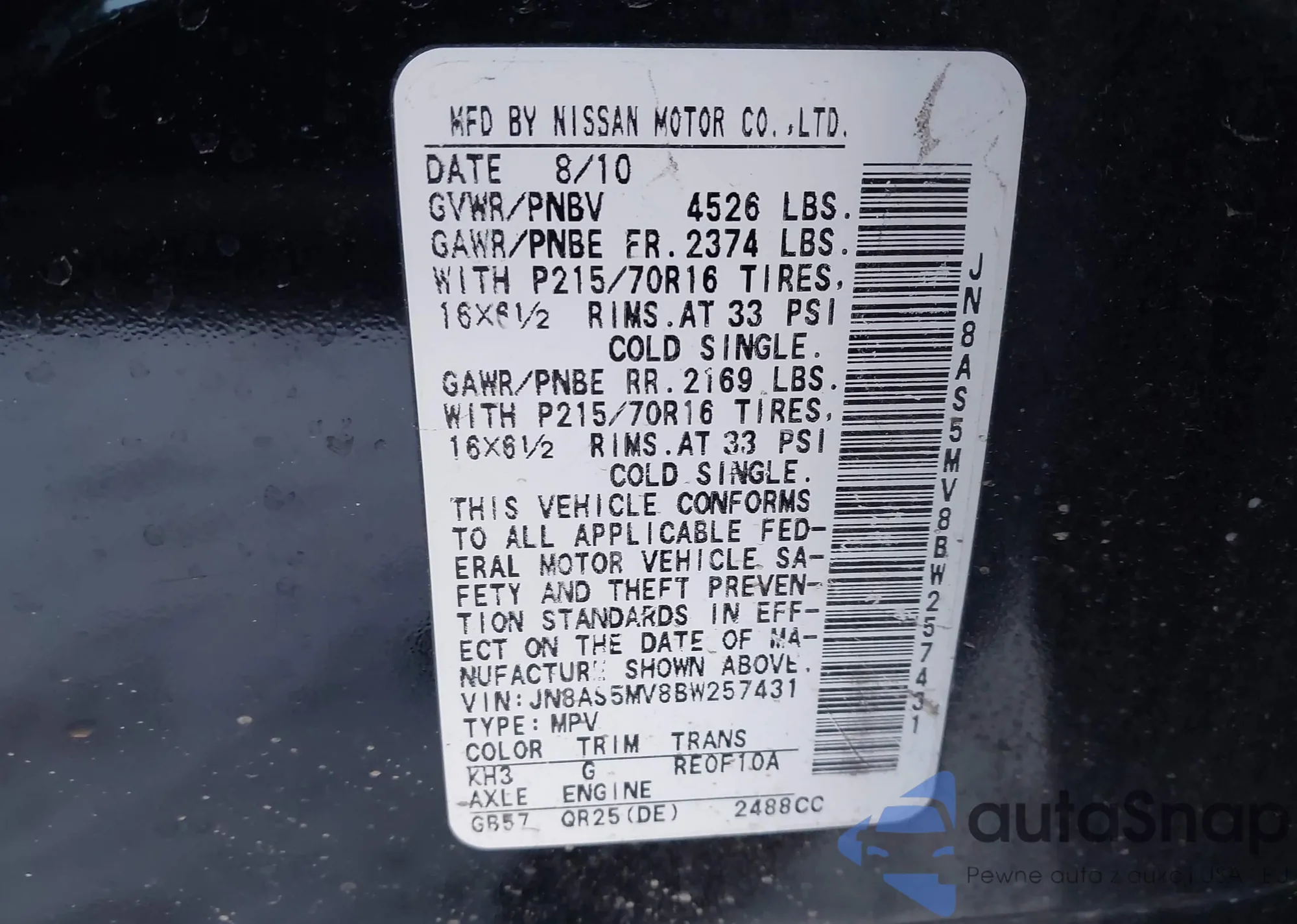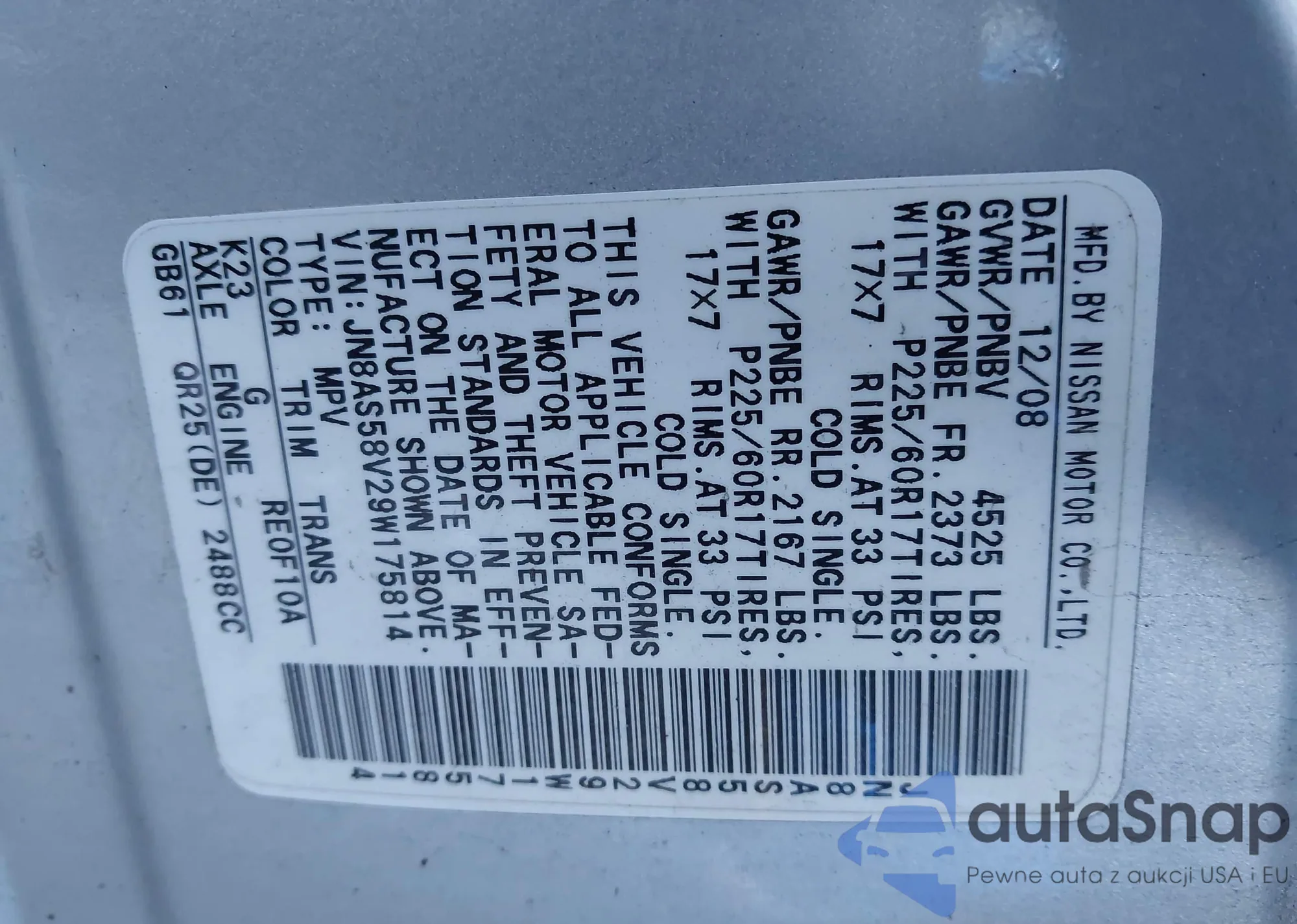 • VIN JN8AS58V29W175814
