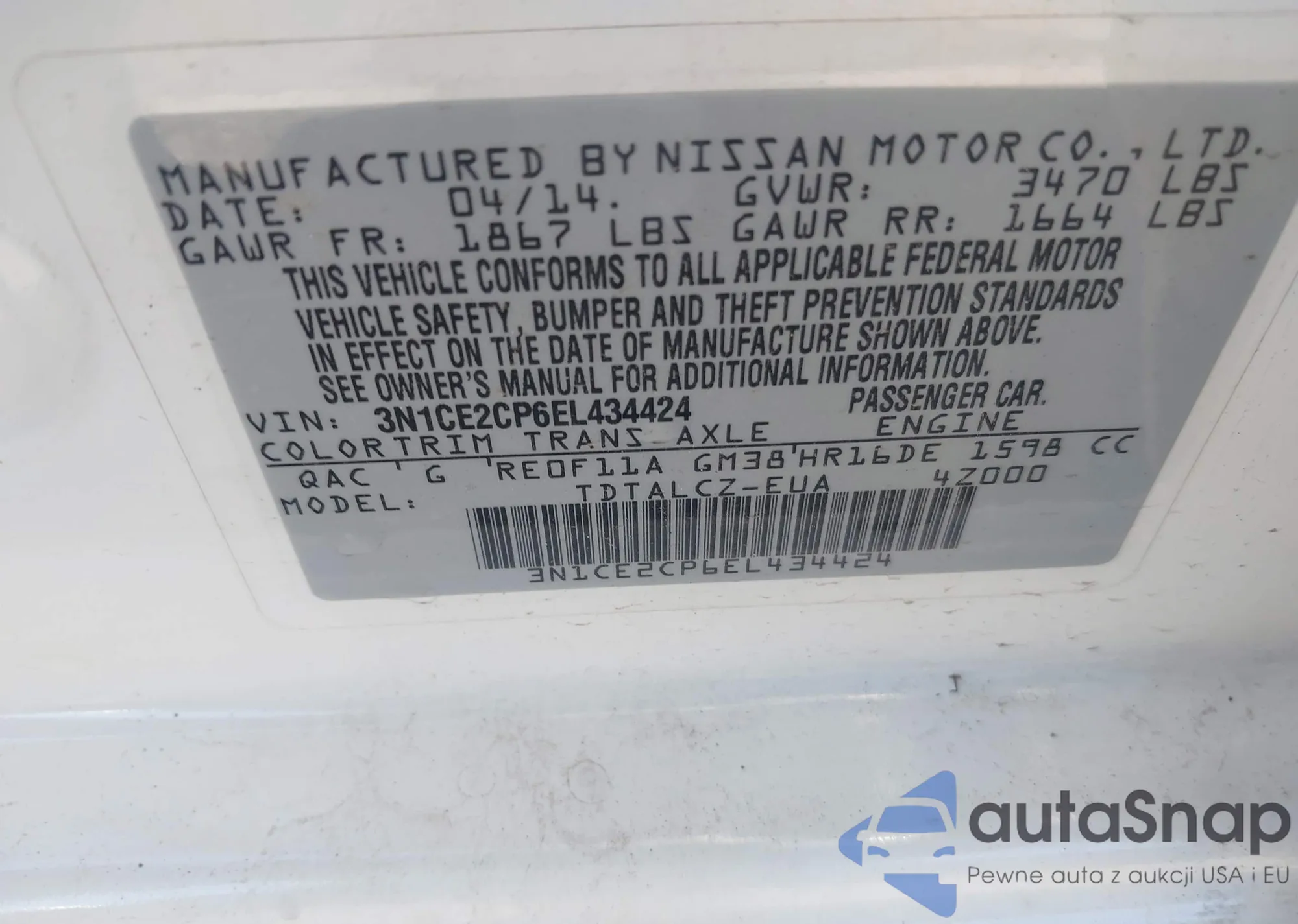• VIN 3LNHL2GC7AR651029