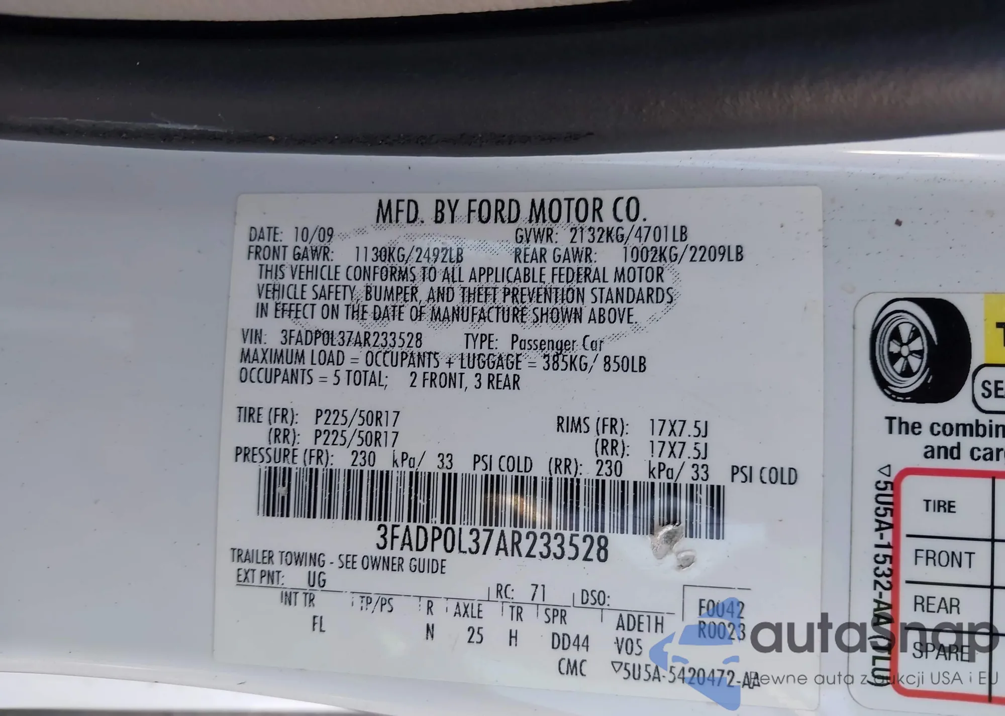 • VIN 3FADP0L37AR233528