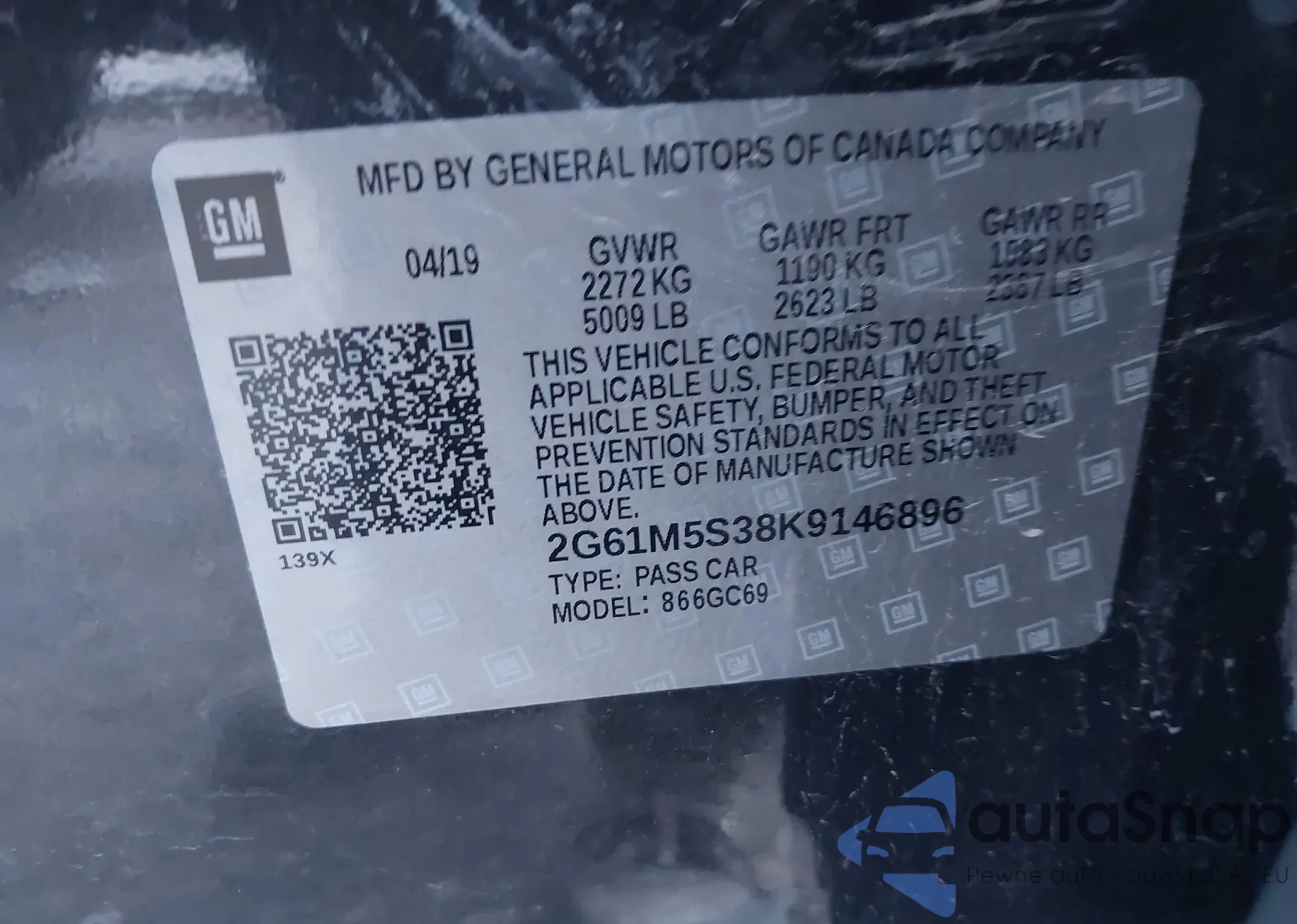 • VIN 2G61M5S38K9146896