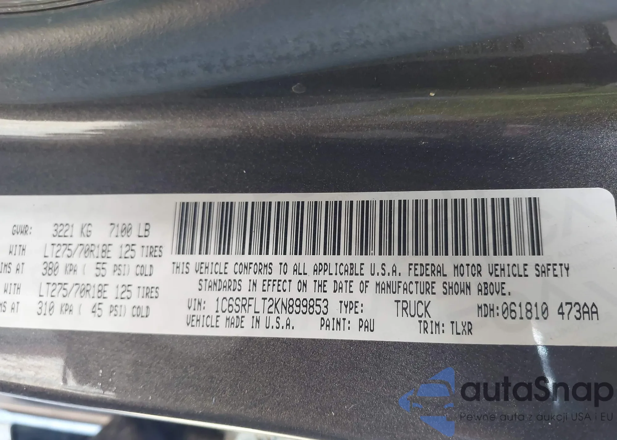 • VIN 1C6SRFLT2KN899853