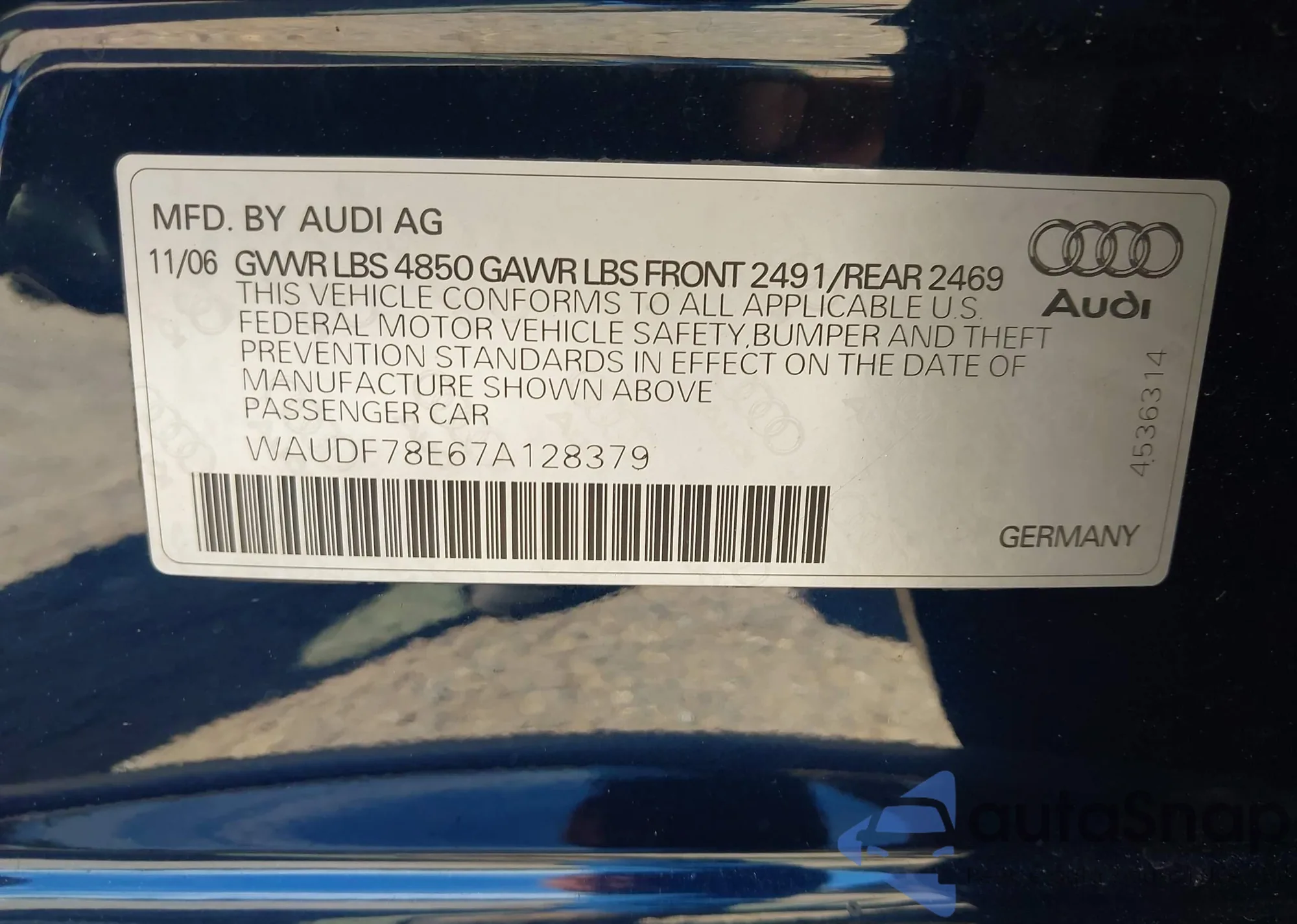 • VIN WAUDF78E67A128379
